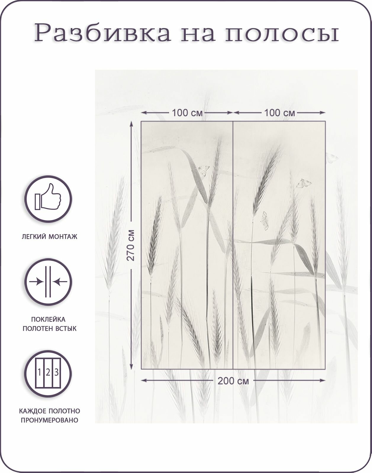 Фотообои на стену флизелиновые 3d Колосья Сухоцветы 200х270 см Bartonwall N170_P