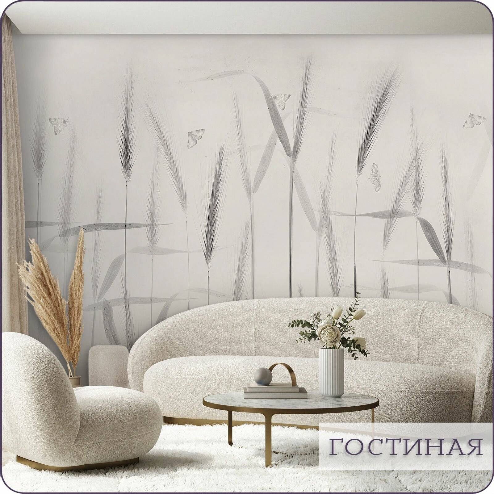 Фотообои на стену флизелиновые 3d Колосья Сухоцветы 600х270 см Bartonwall N170_C