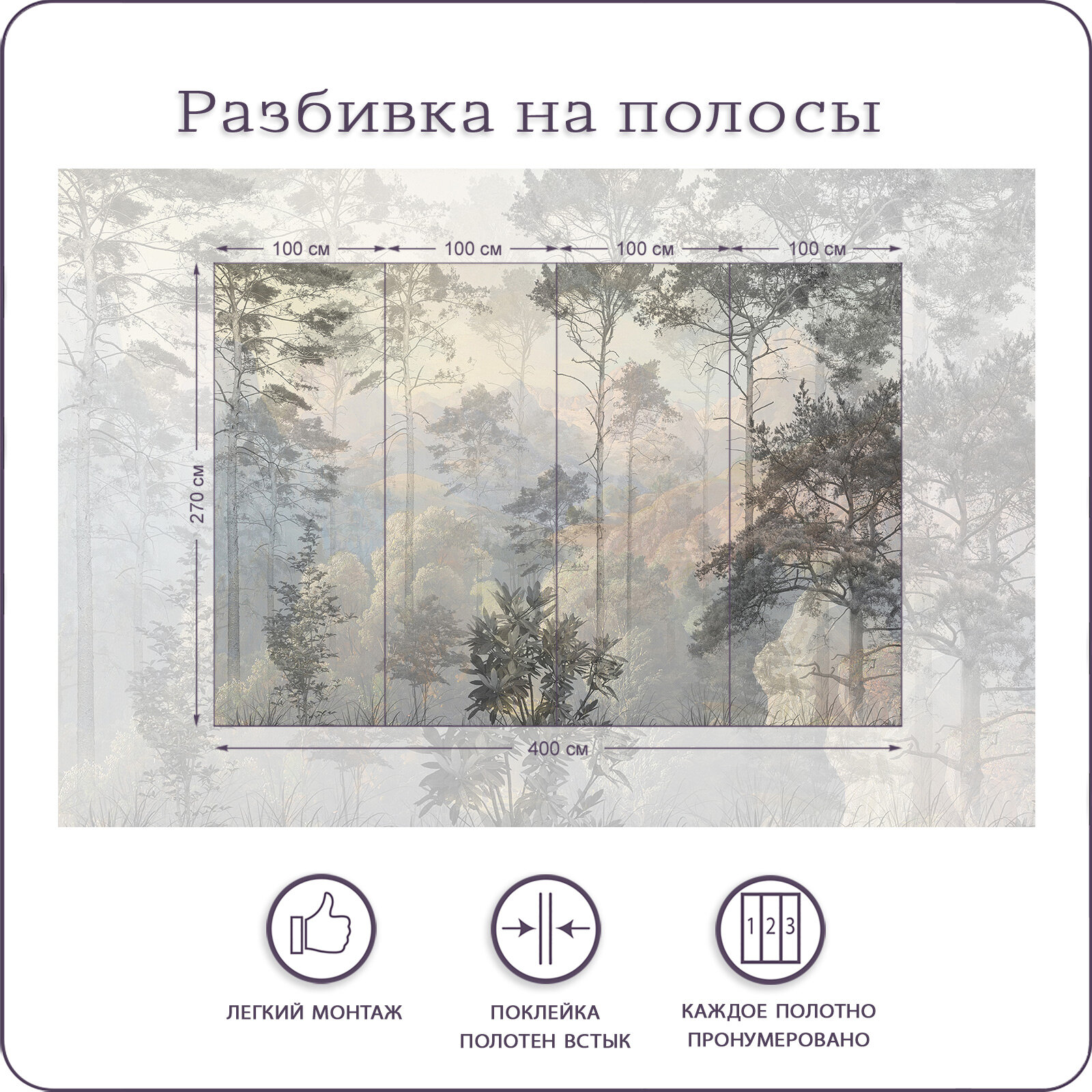 Фотообои на стену флизелиновые 3d Туманный лес Природа 600x270 см Bartonwall N169_B