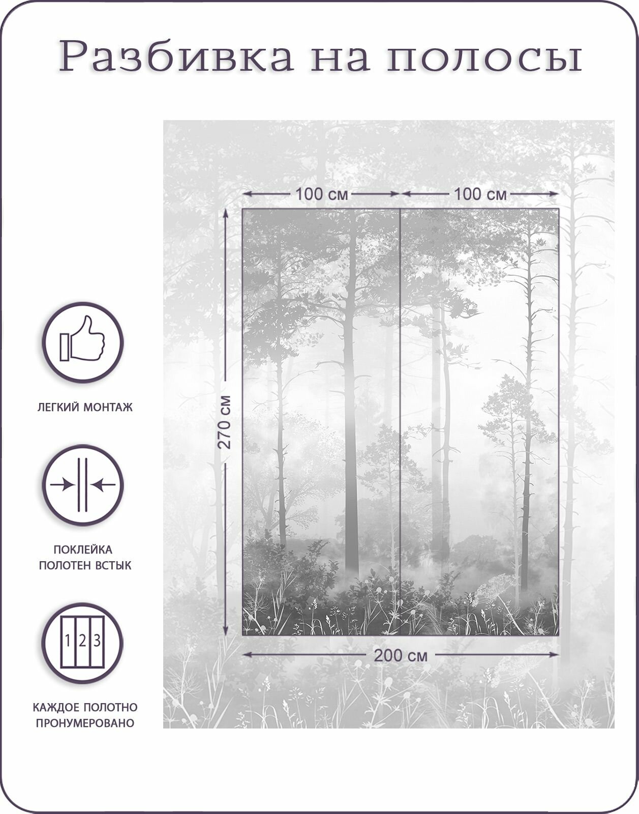 Фотообои на стену флизелиновые 3d Туманный лес Природа 600x270 см Bartonwall N169_B