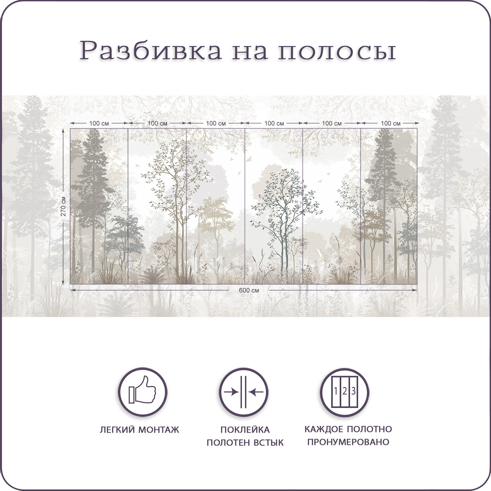 Фотообои на стену флизелиновые 3d Туманный лес Природа 600x270 см Bartonwall N169_G