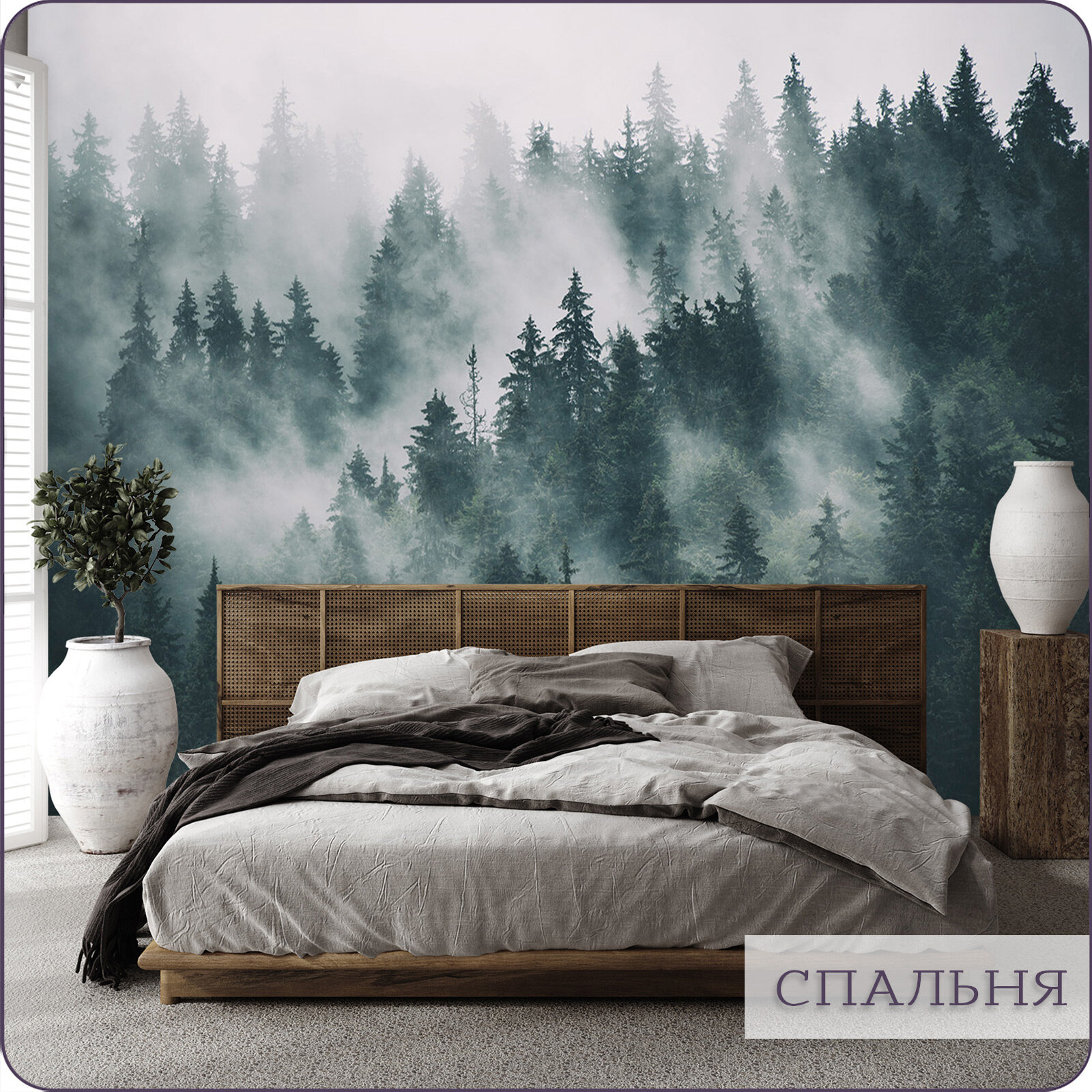 Фотообои на стену флизелиновые 3d Природа Туманный Лес 200х270 см Bartonwall N028