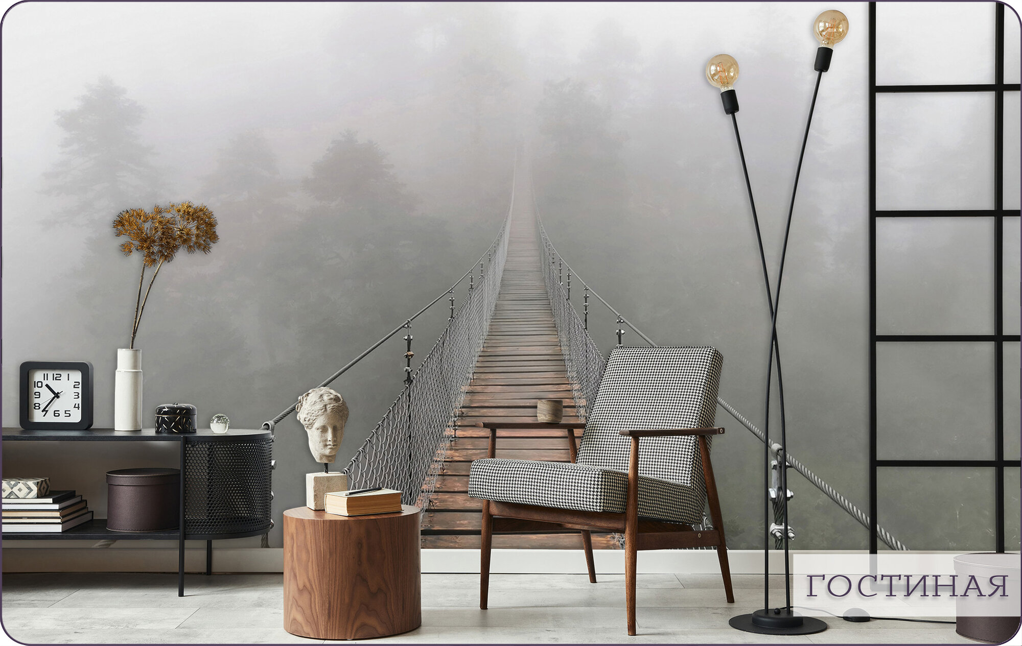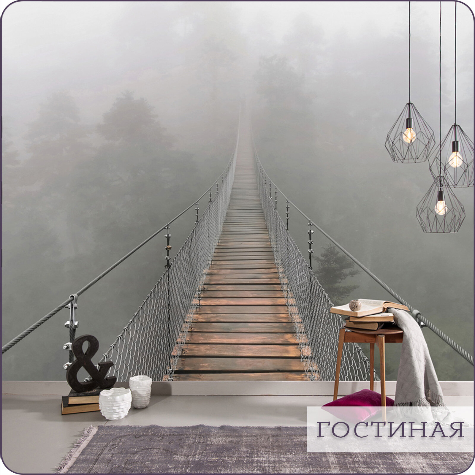 СохранитьФотообои на стену флизелиновые 3d Мост Туманный лес 300х270 см Bartonwall N009 интересное: