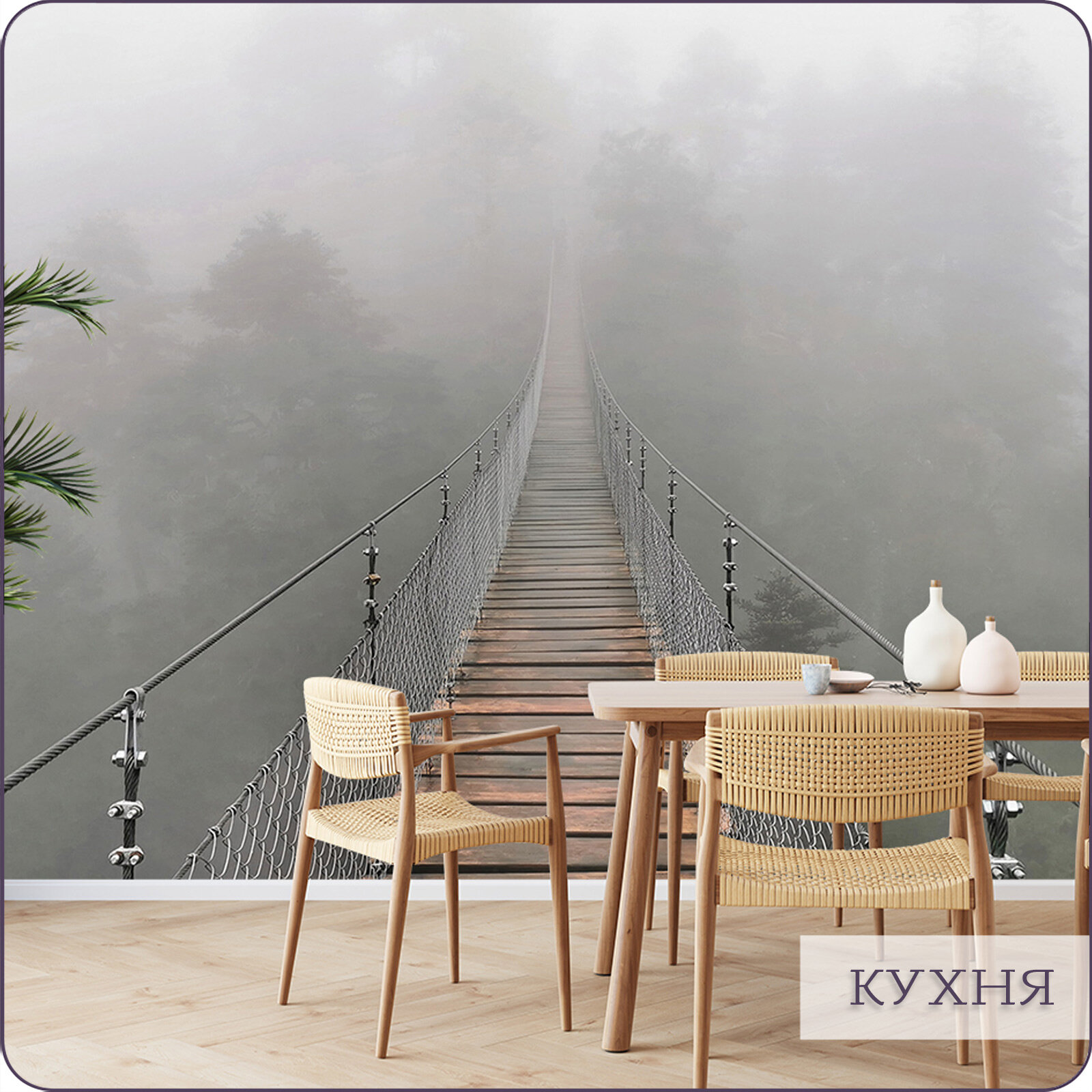 Купить Фотообои на стену флизелиновые 3d Мост Туманный лес 300х270 см Bartonwall N009