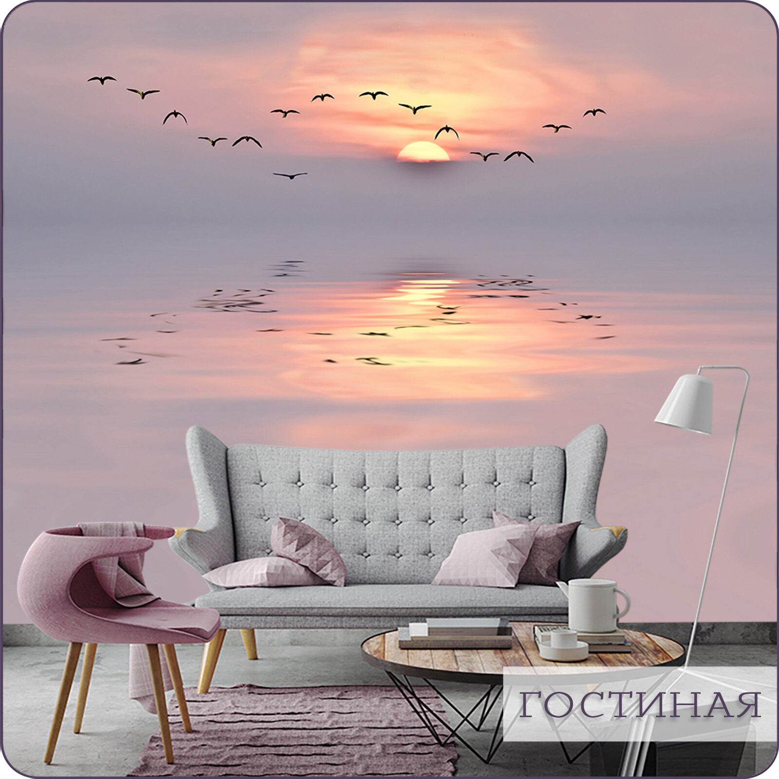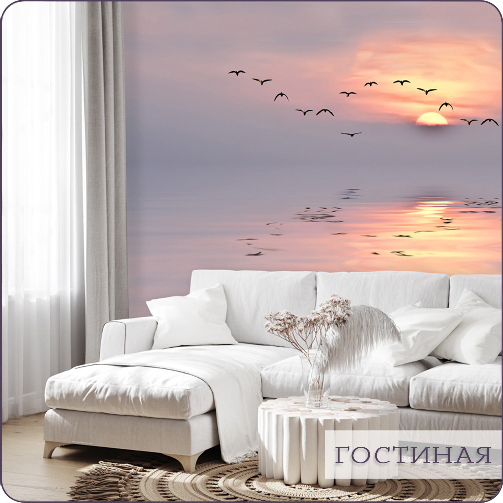 СохранитьФотообои на стену флизелиновые 3d Море Закат Птицы 200х270 см Bartonwall N030 интересное: