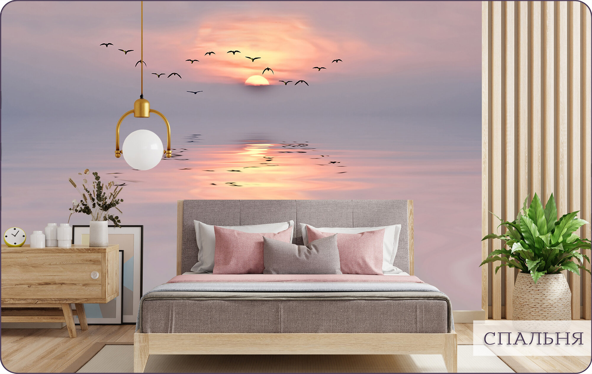 Купить Фотообои на стену флизелиновые 3d Море Закат Птицы 200х270 см Bartonwall N030