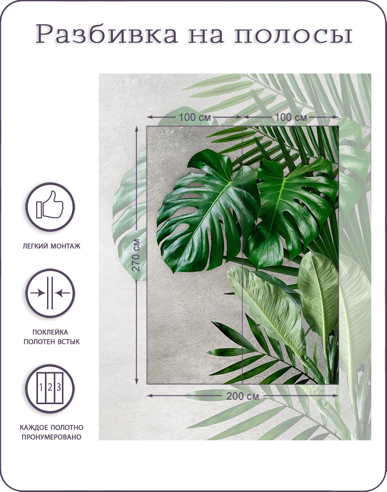 Купить Фотообои на стену флизелиновые 3d Растения Тропические листья Пальмы Монстера 200х270 см Bartonwall N108