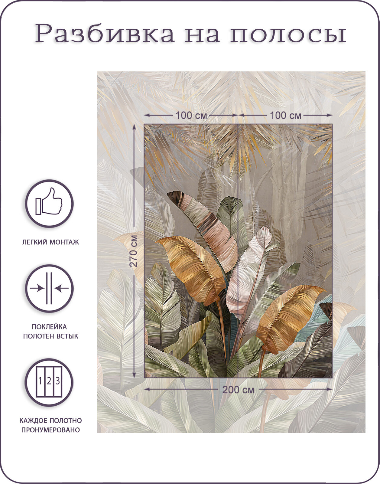 Купить Фотообои на стену флизелиновые 3d Листья Тропики 200х270 см Bartonwall N107-B