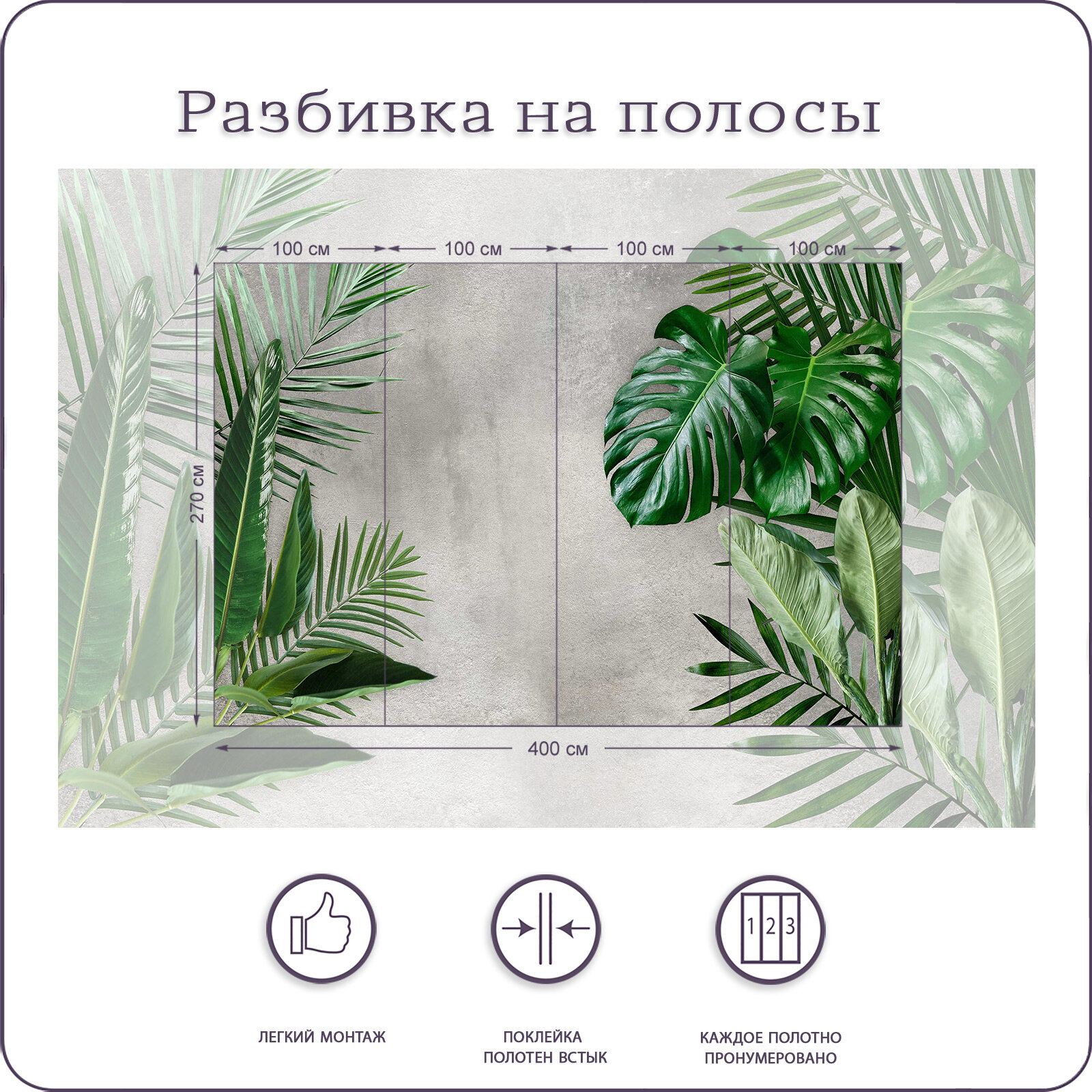 Купить Фотообои на стену флизелиновые 3d Растения Тропические листья Пальмы Монстера 400х270 см Bartonwall N108
