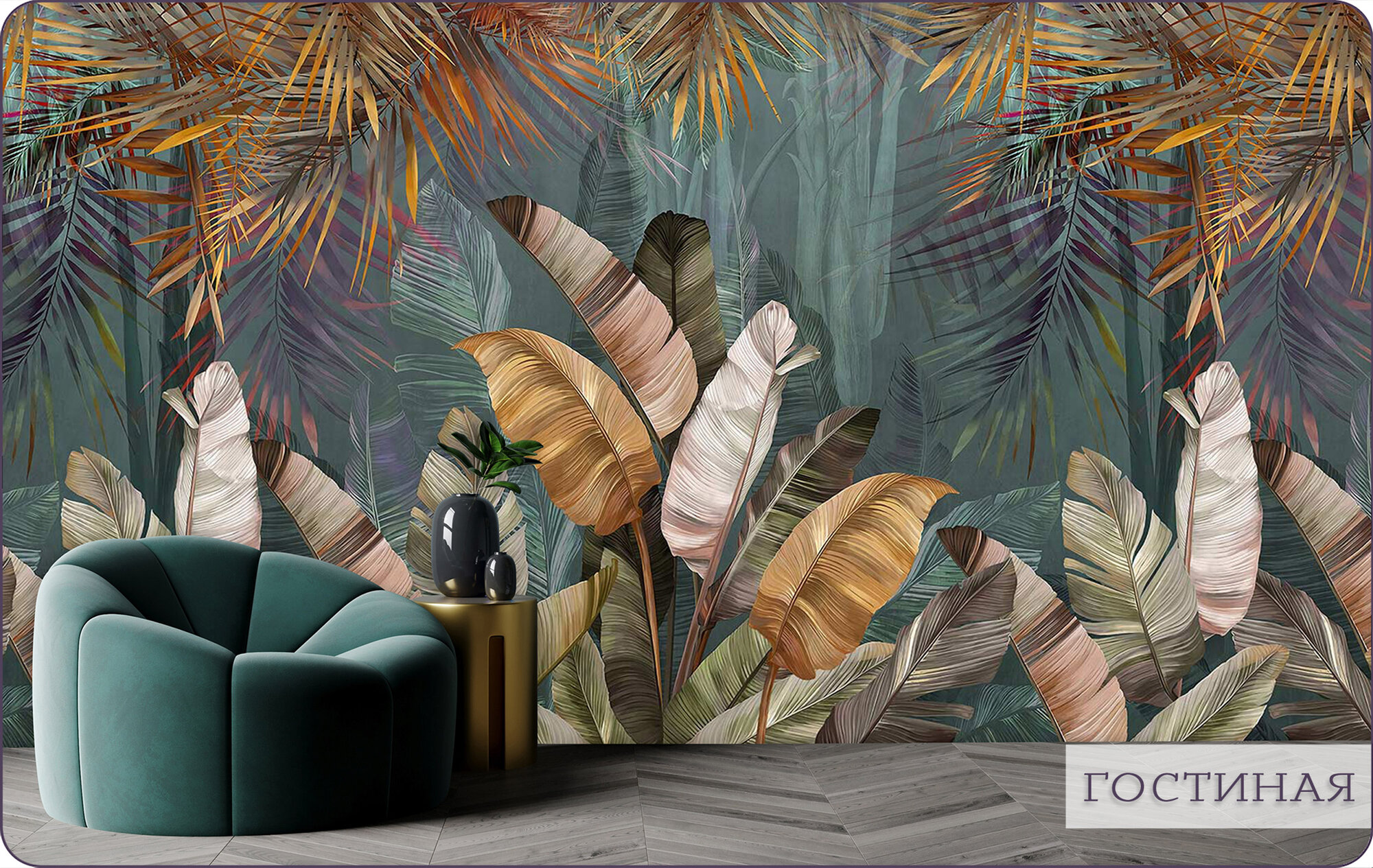 СохранитьФотообои на стену флизелиновые 3d Листья Тропики 200х270 см Bartonwall N107-Z интересное:
