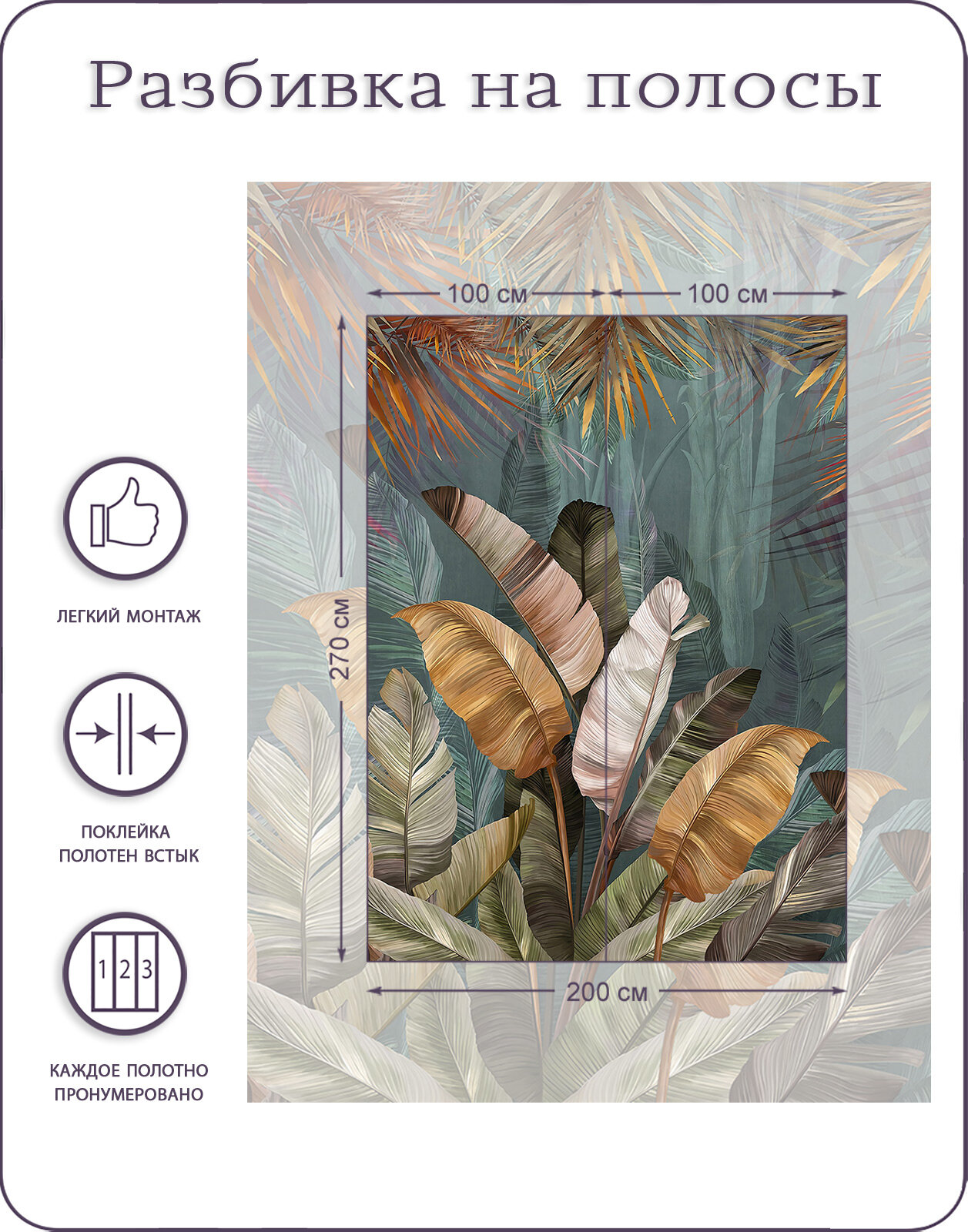 Купить Фотообои на стену флизелиновые 3d Листья Тропики 200х270 см Bartonwall N107-Z