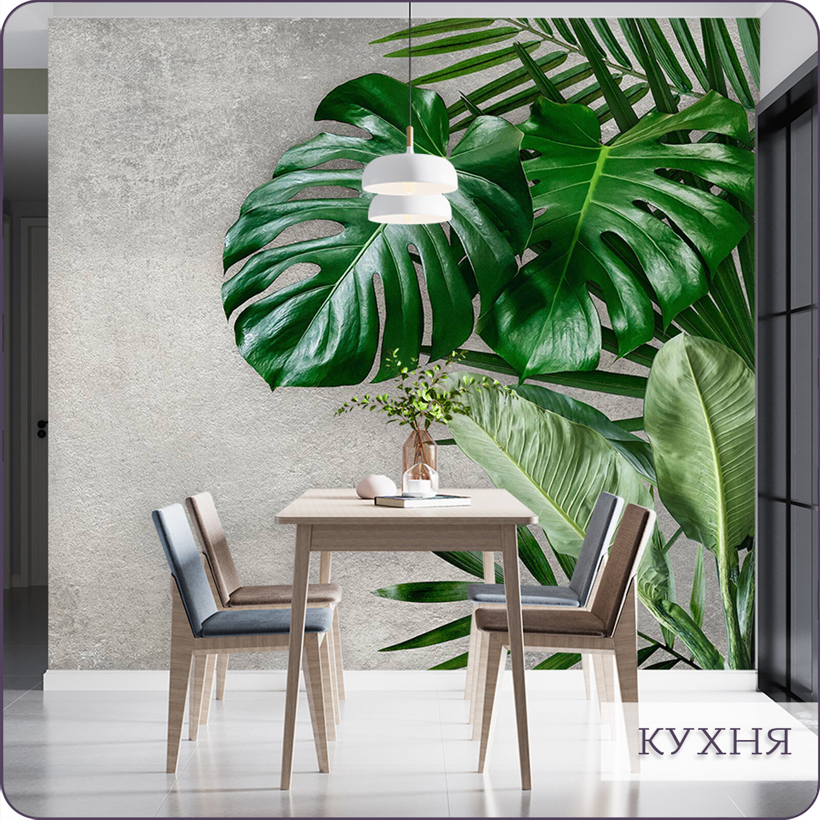 СохранитьФотообои на стену флизелиновые 3d Растения Тропические листья Пальмы Монстера 600х270 см Bartonwall N108 интересное:
