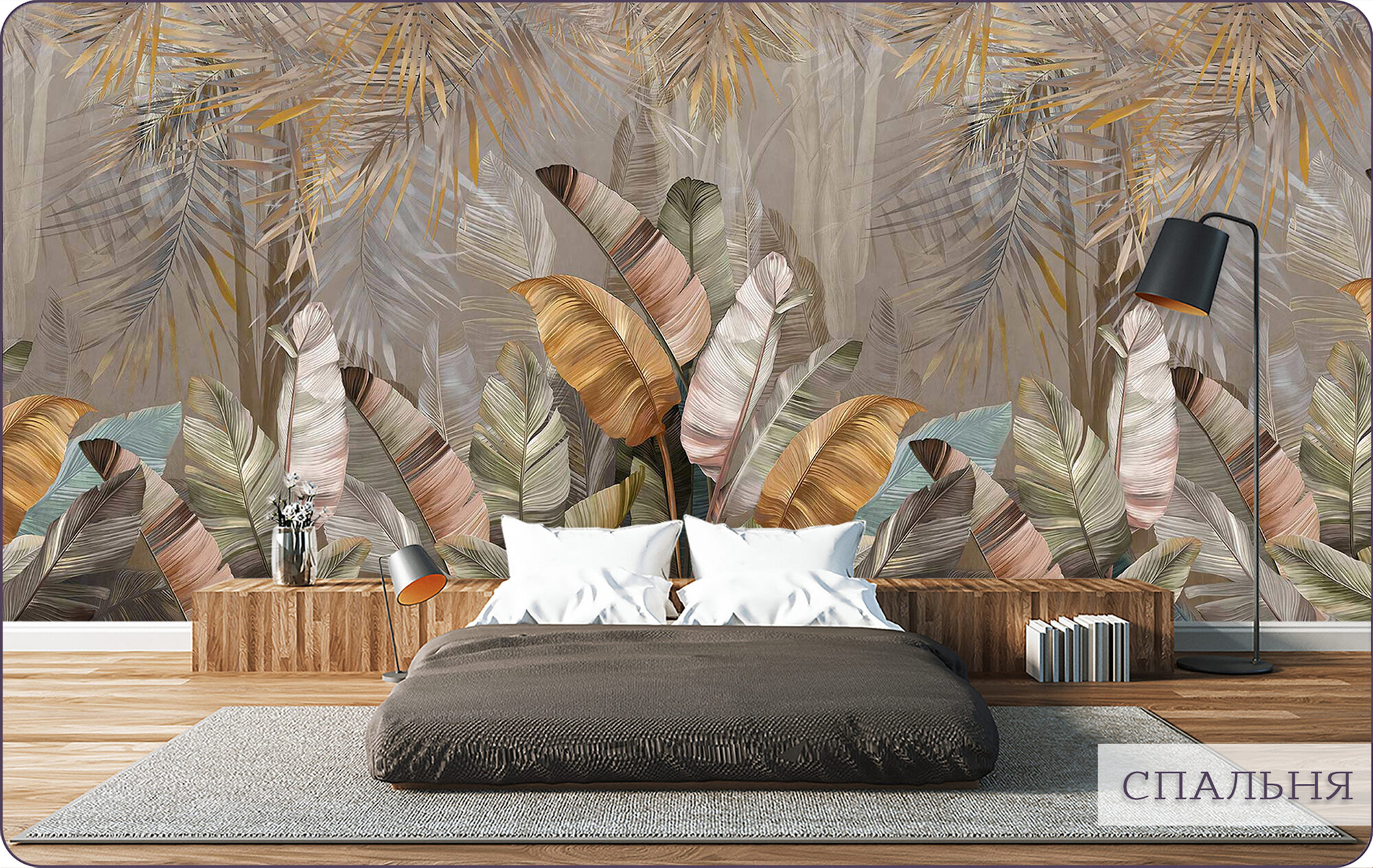 СохранитьФотообои на стену флизелиновые 3d Листья Тропики 400х270 см Bartonwall N107-B интересное: