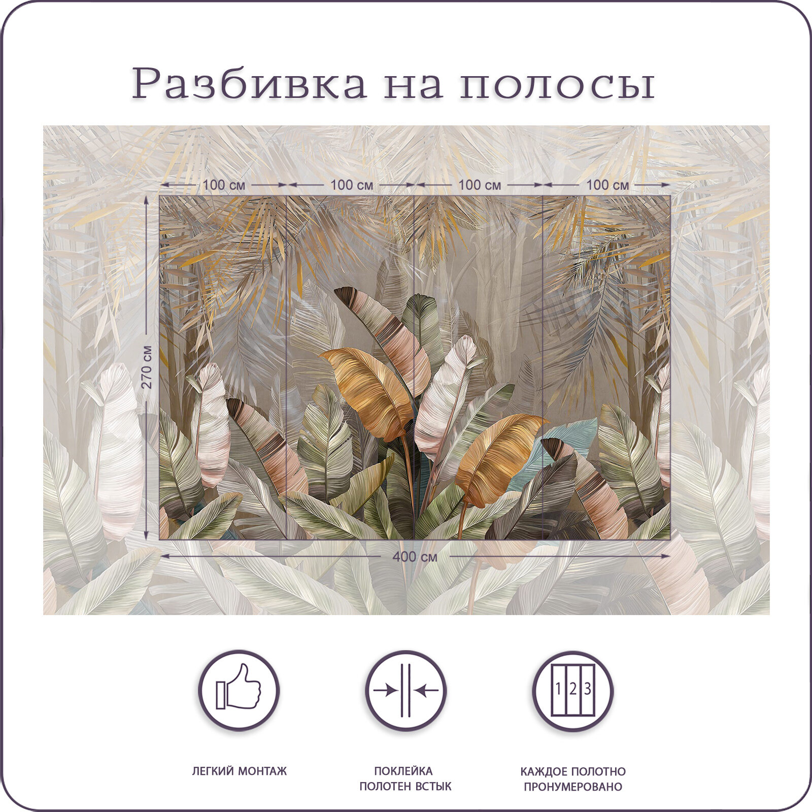 Купить Фотообои на стену флизелиновые 3d Листья Тропики 400х270 см Bartonwall N107-B