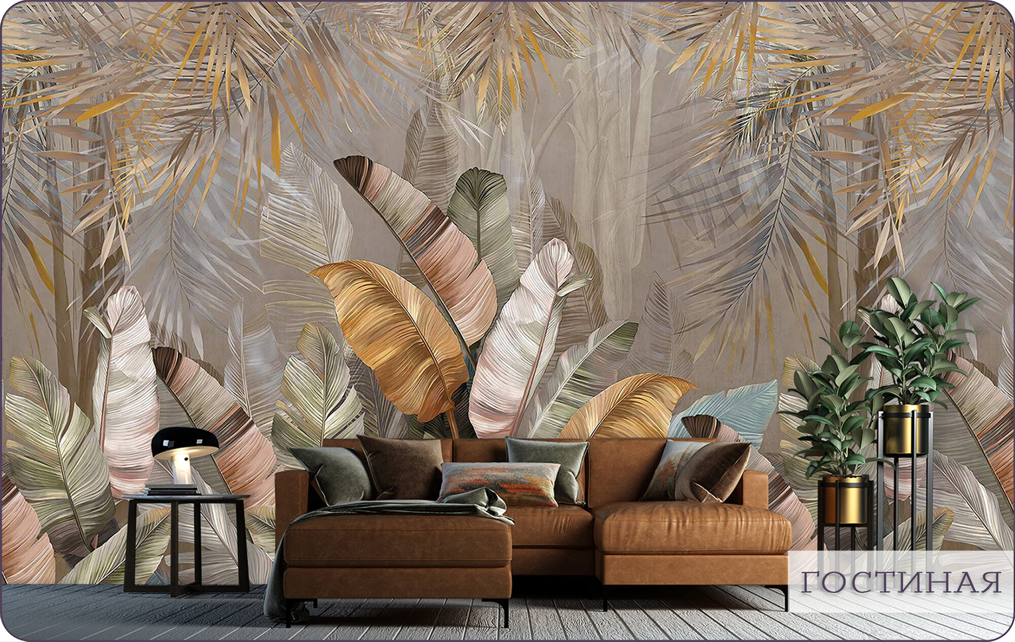 Фотообои на стену флизелиновые 3d Растения Тропические листья Пальмы Монстера 600х270 см Bartonwall N108