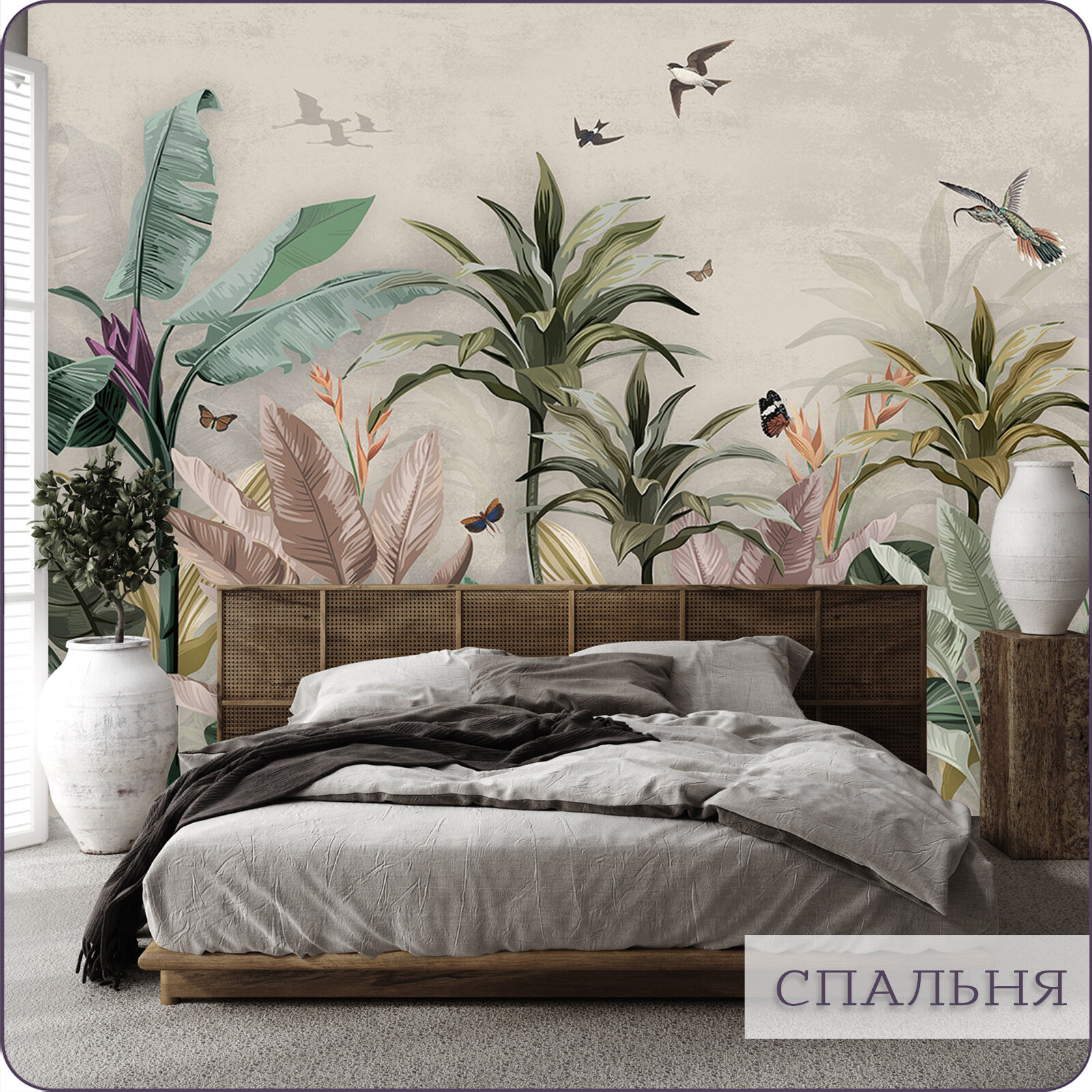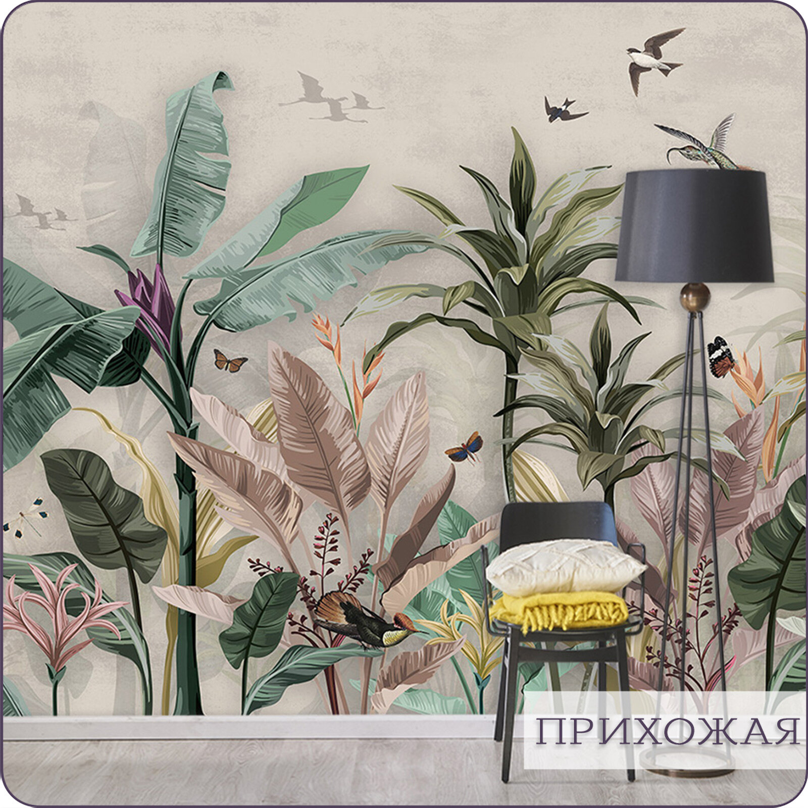 СохранитьФотообои на стену флизелиновые 3d Птицы Листья Тропики 600х270 см Bartonwall N104 интересное: