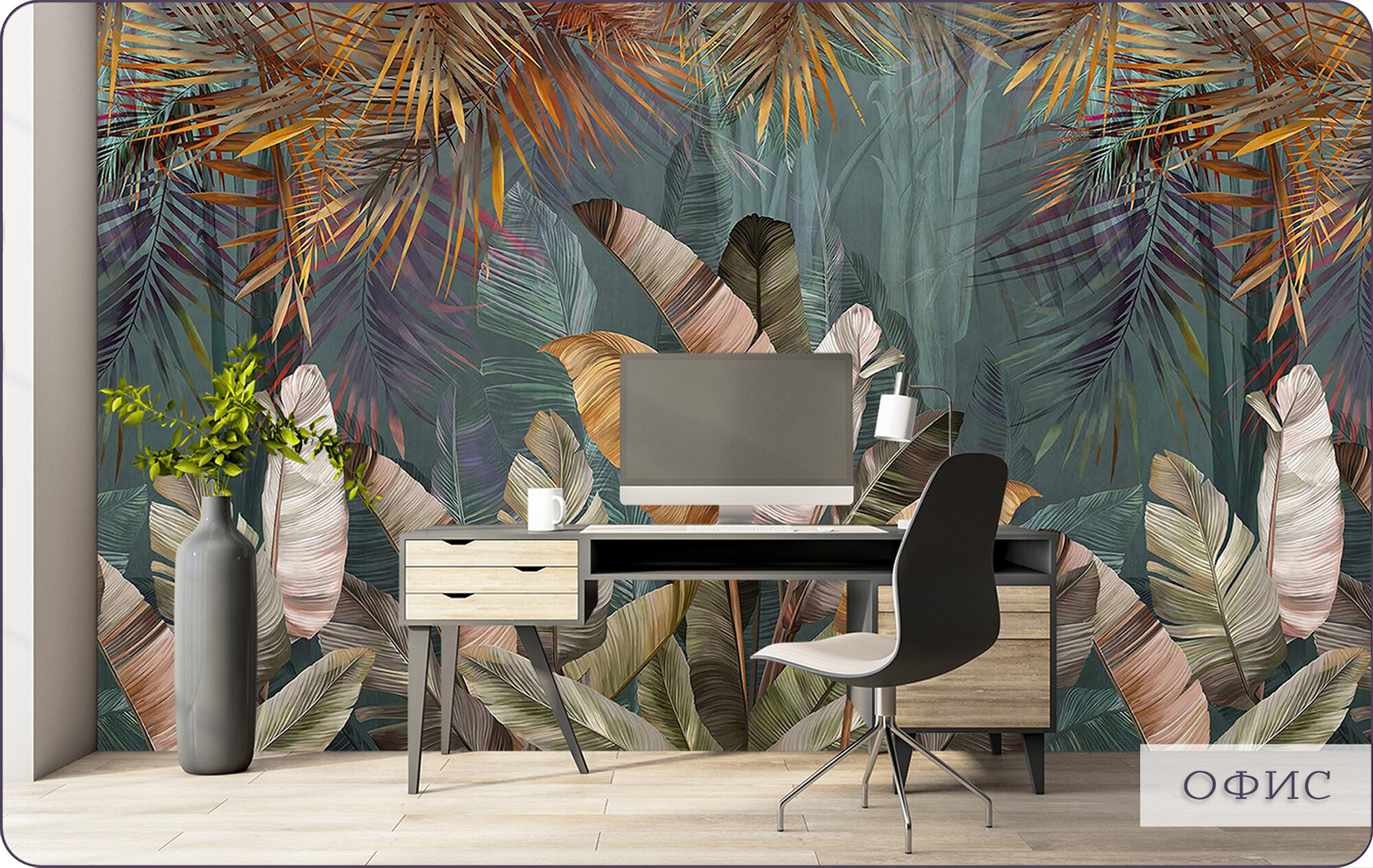 Купить Фотообои на стену флизелиновые 3d Листья Тропики 600х270 см Bartonwall N107-Z