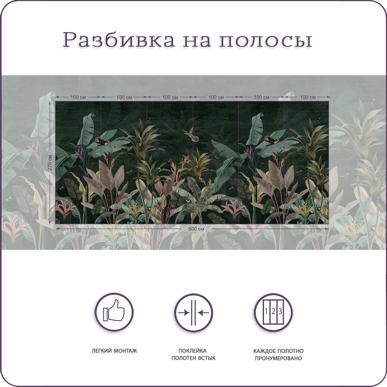 Купить Фотообои на стену флизелиновые 3d Птицы Листья Тропики 600х270 см Bartonwall N104-Z