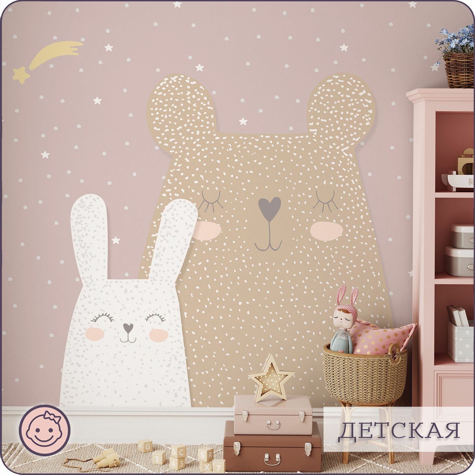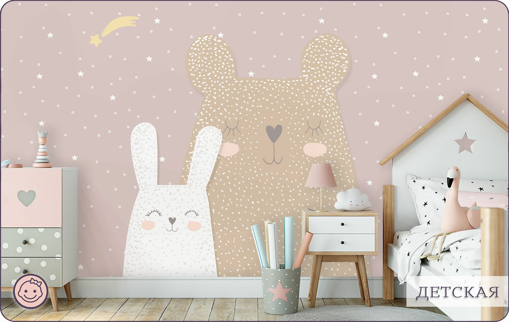 Фотообои на стену флизелиновые 3d Детские Животные Звезды 500х270 см Bartonwall K090-P интересное: