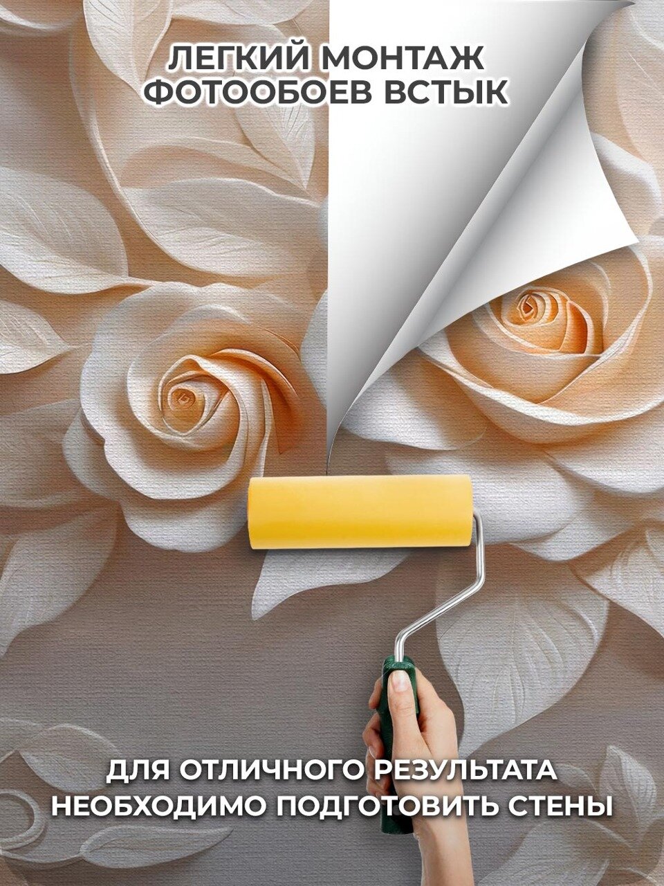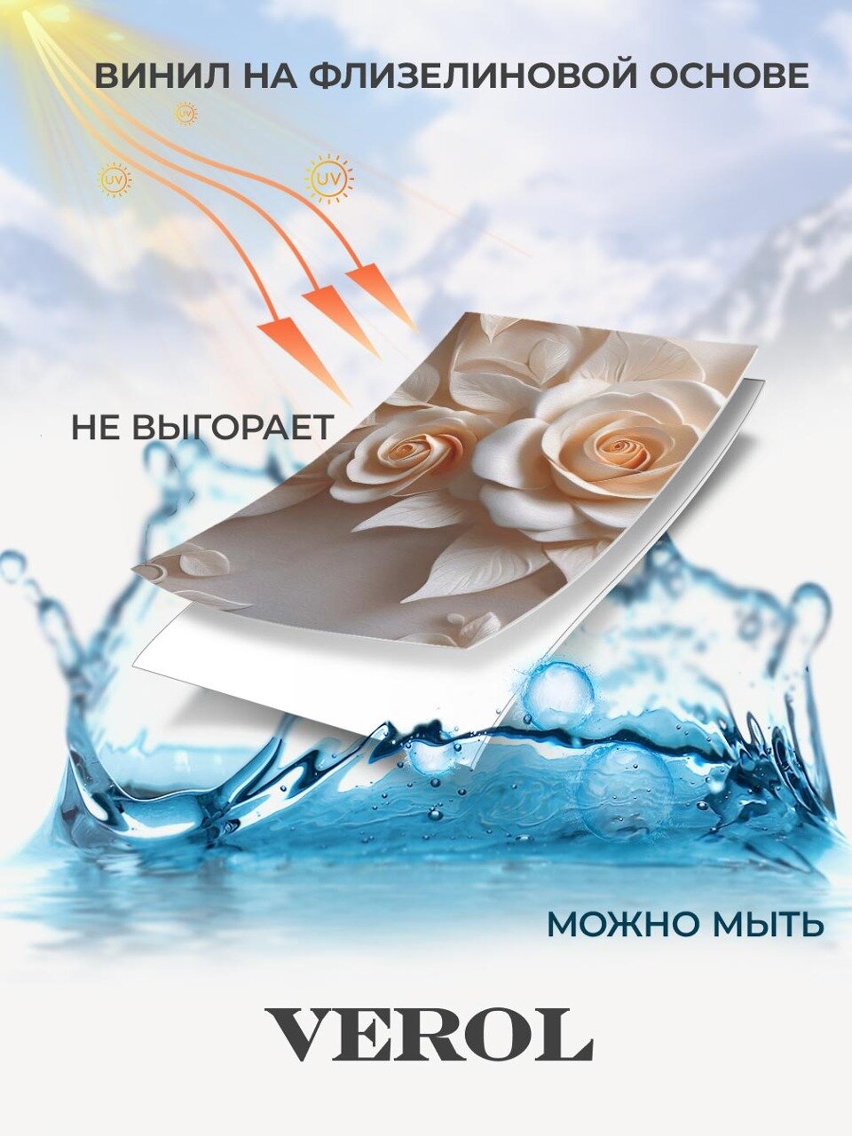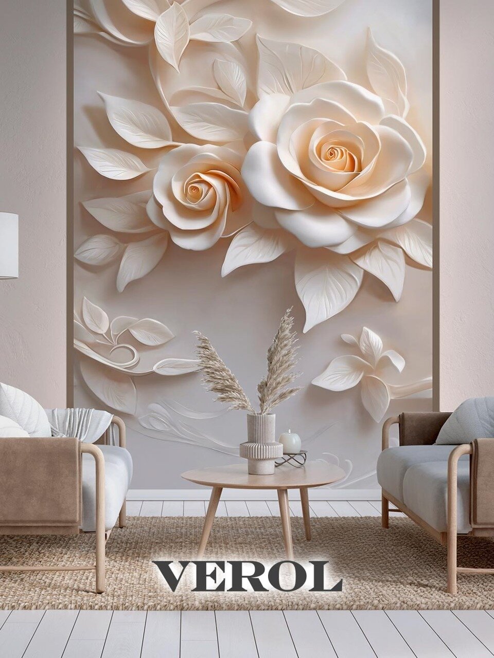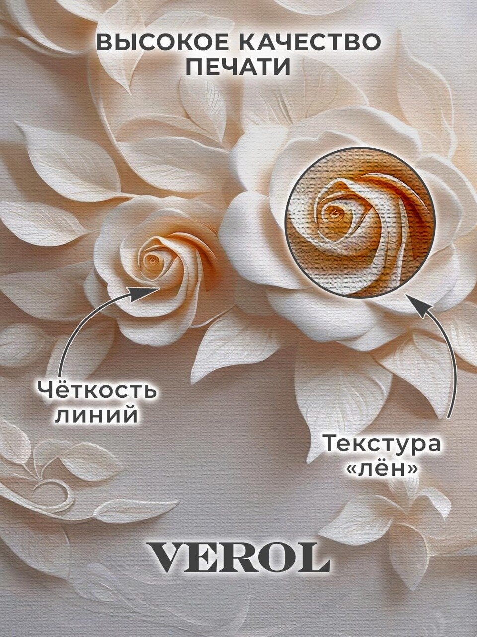 Фотообои 3D флизелиновые VEROL "Цветы лепнина" 200*278 см, виниловое покрытие интересное: