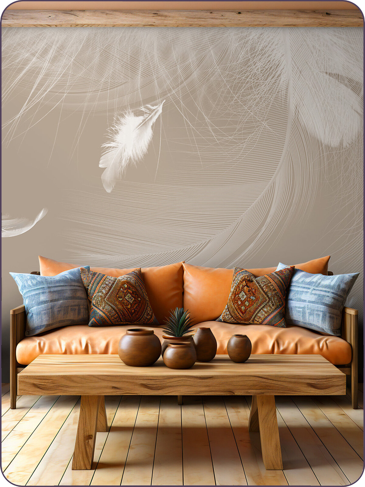 Фотообои на стену флизелиновые 3d Перья 200х270 см Bartonwall M083