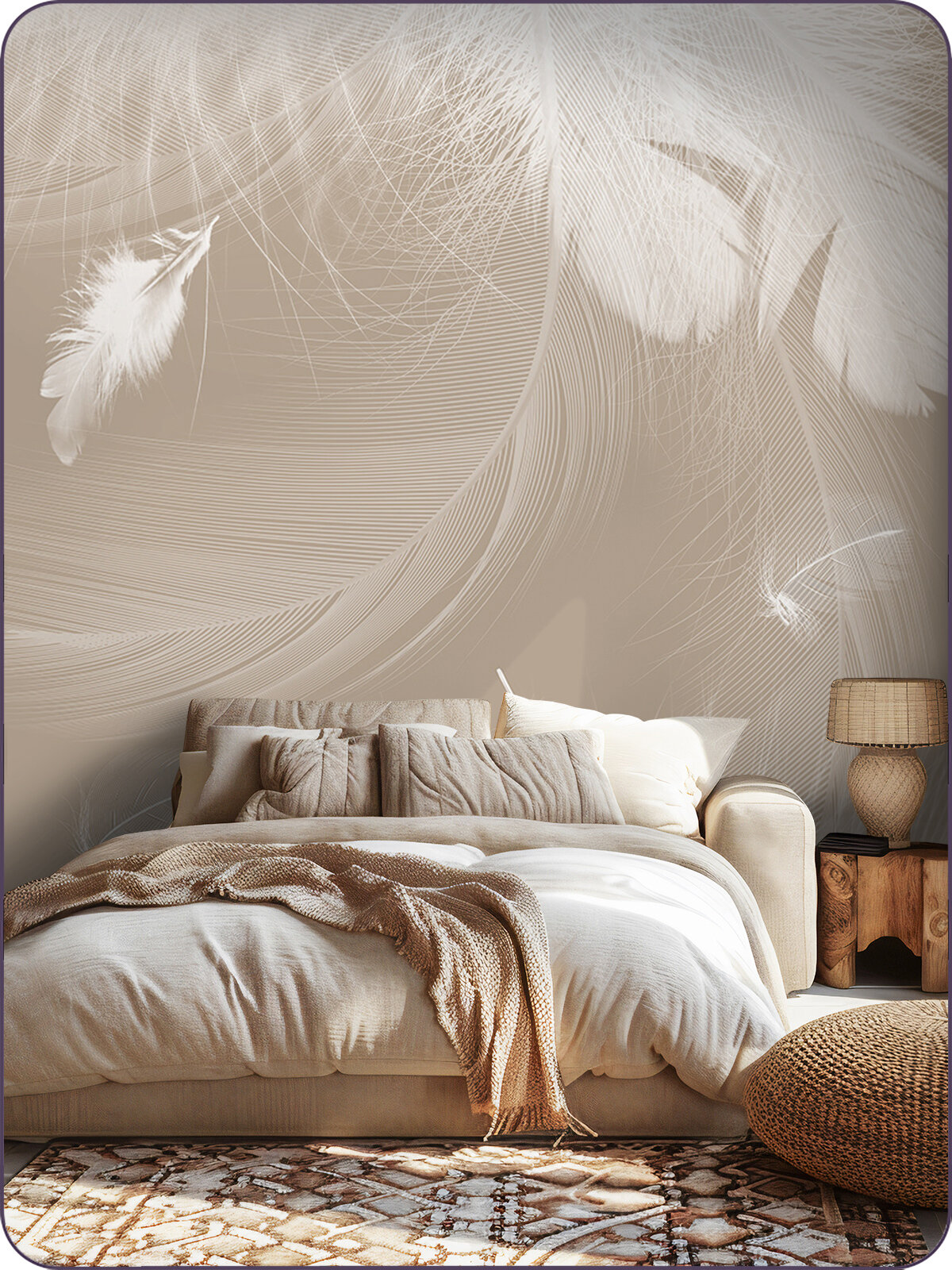 Фотообои на стену флизелиновые 3d Перья 200х270 см Bartonwall M188
