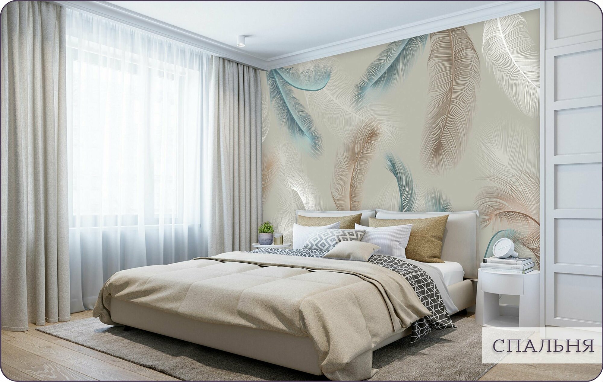 Фотообои на стену флизелиновые 3d Перья 200х270 см Bartonwall M241