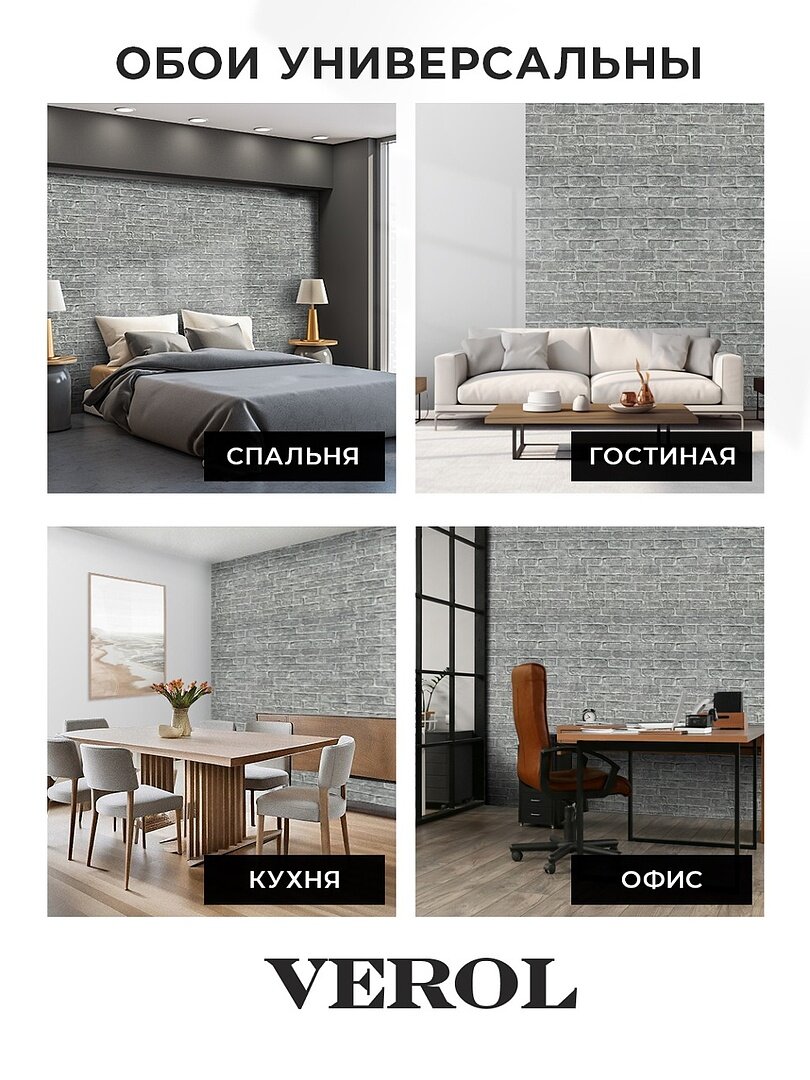 Купить Обои флизелиновые VEROL "Серый под кирпич", 1,06х10 м, 1 шт, моющиеся, износостойкие, водостойкие