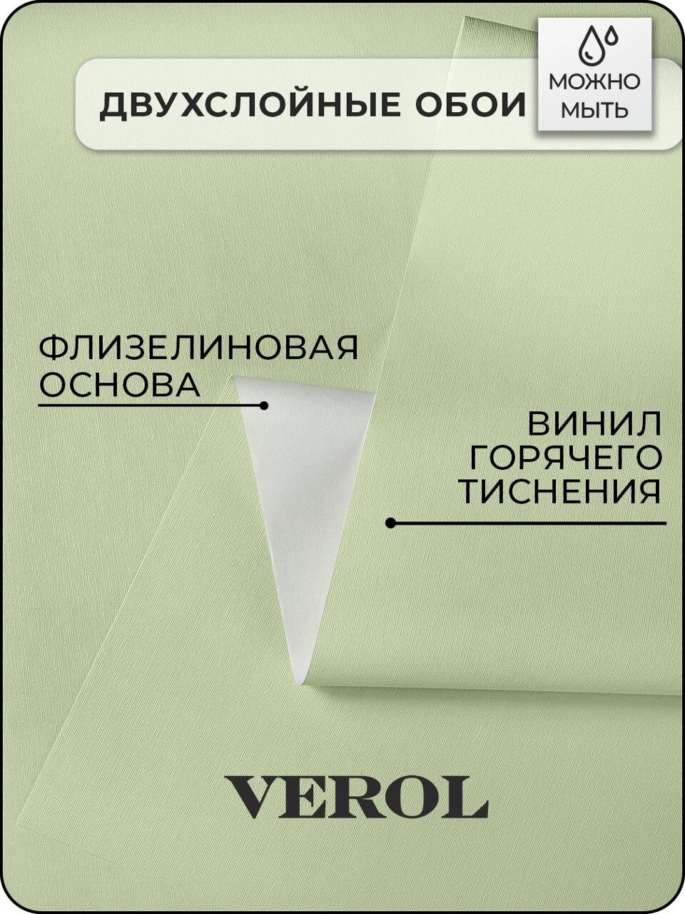 Купить Обои флизелиновые VEROL «Зеленые» 1.06х10 м, площадь 10.6 м2, обои на стену, декор для дома, виниловые на флизелине метровые однотонные компаньоны