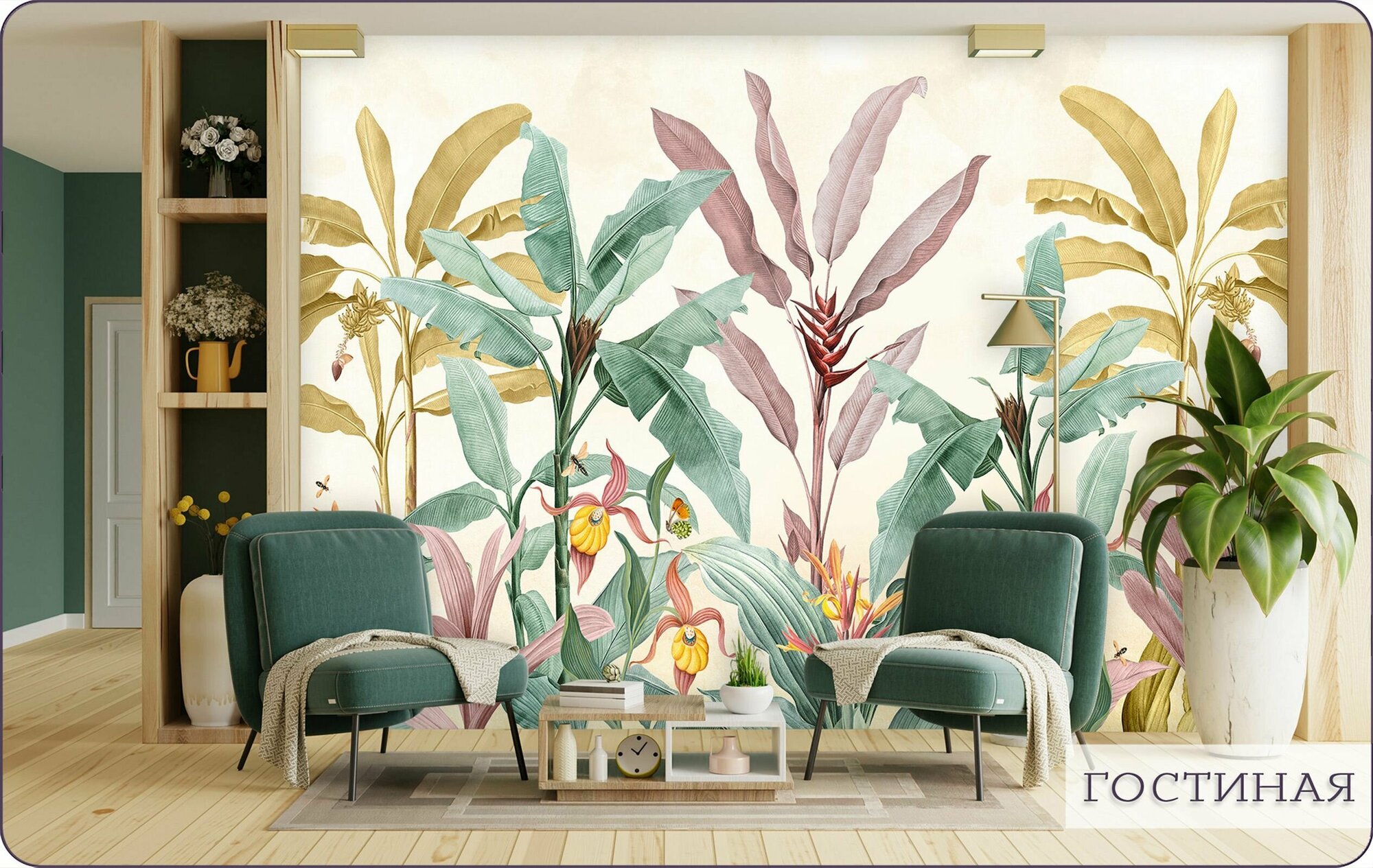 Купить Фотообои на стену флизелиновые 3d Растения Листья Цветы 500х270 см Bartonwall N133
