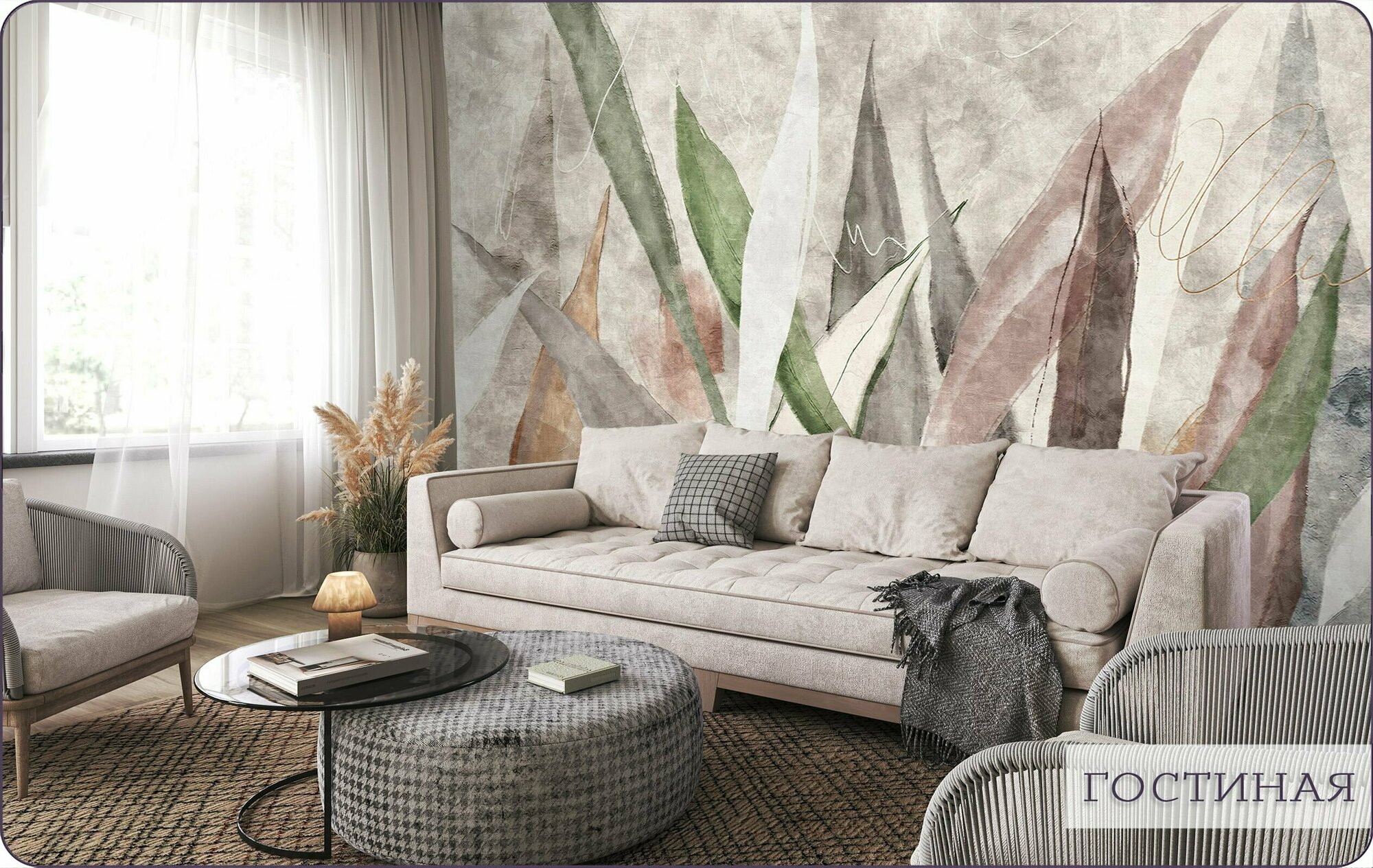 Фотообои на стену флизелиновые 3d Природа Листья Цветы 600х270 см Bartonwall M270-GZ