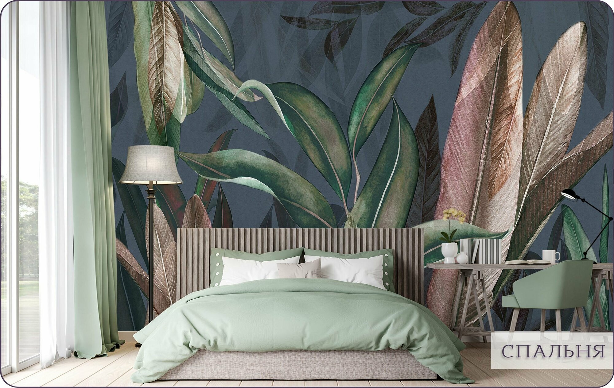 Фотообои на стену флизелиновые 3d Растения Листья 200х270 см Bartonwall M229