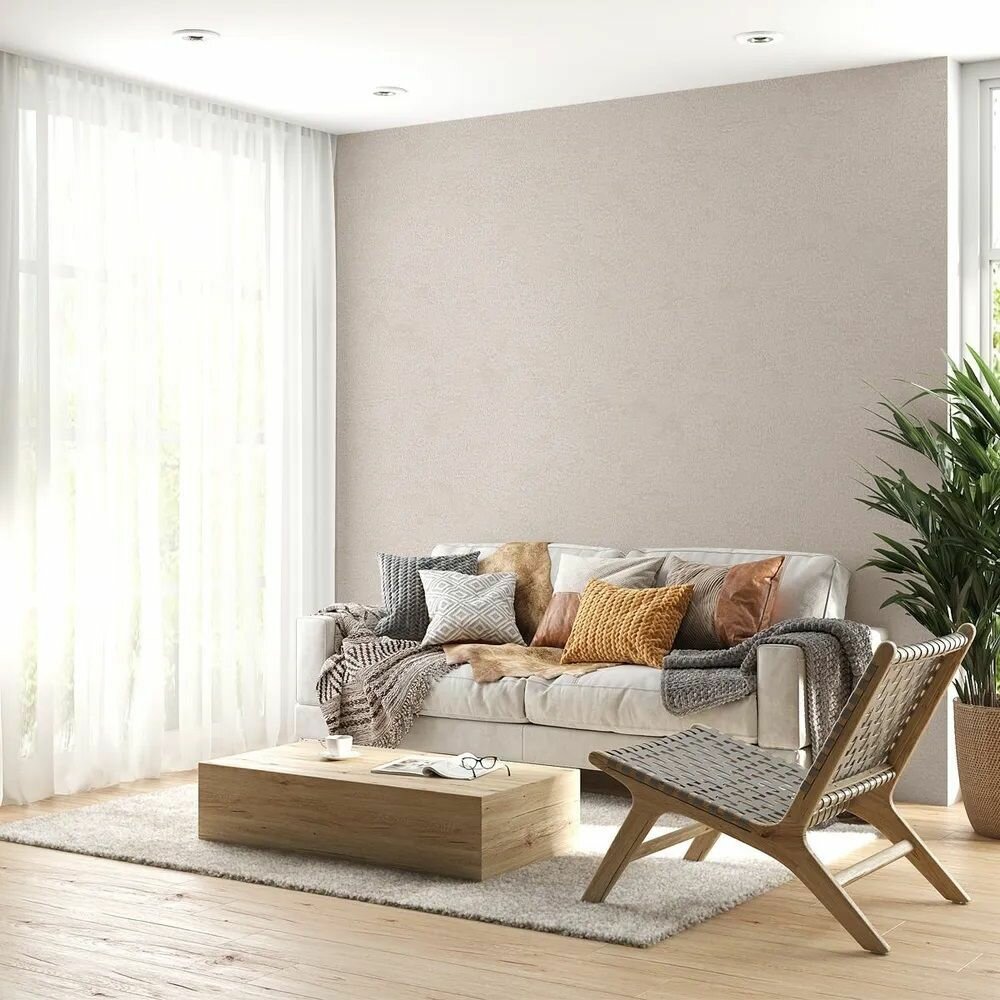 Обои с текстурой мелкая рогожка, под лён, без подбора, моющиеся, размер 1.06х10 м. Бежевые интересное: