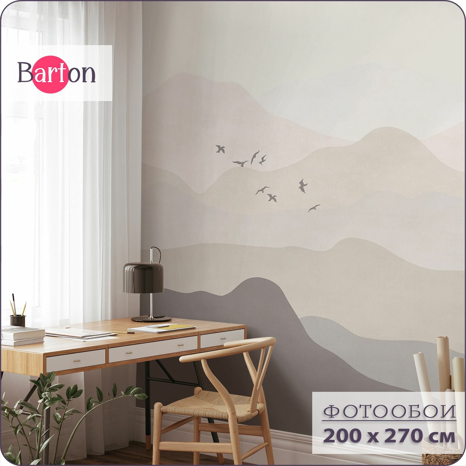 Купить Фотообои на стену флизелиновые 3d Горы Птицы 200х270 см Bartonwall N023-B