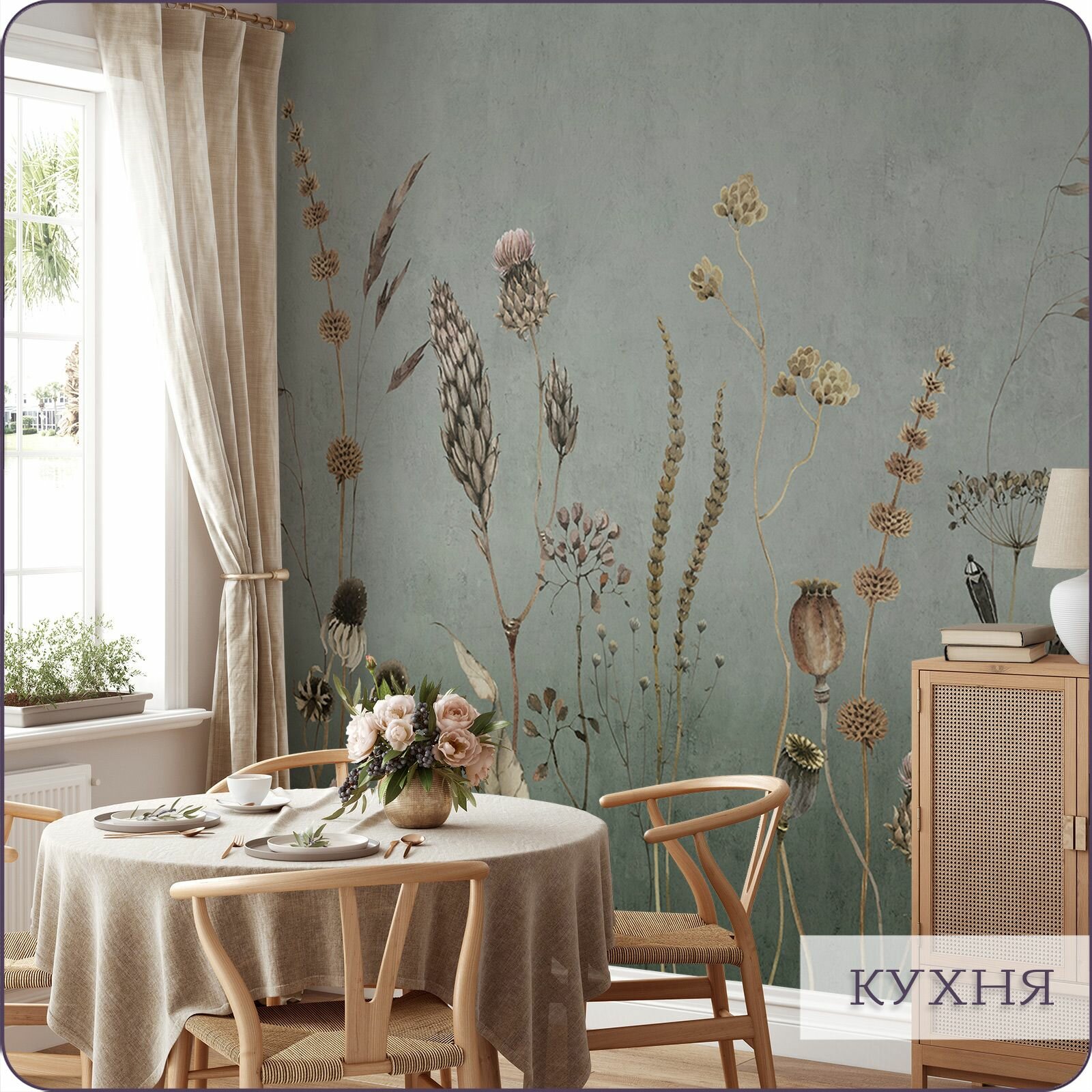 Фотообои на стену флизелиновые 3d Лофт Полевые цветы 300х270 см Bartonwall F073-G