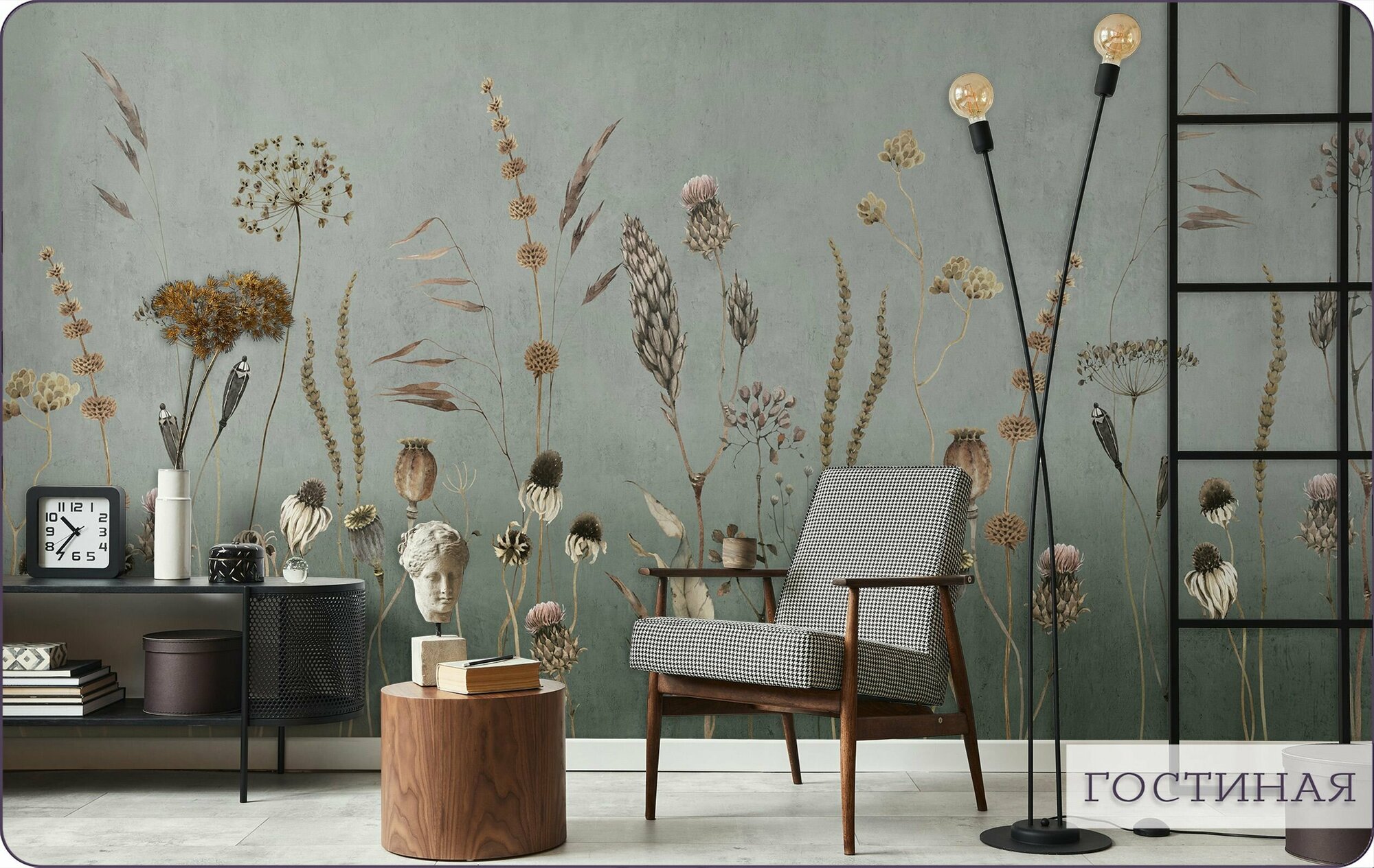 Фотообои на стену флизелиновые 3d Лофт Полевые цветы 200х270 см Bartonwall F073-G