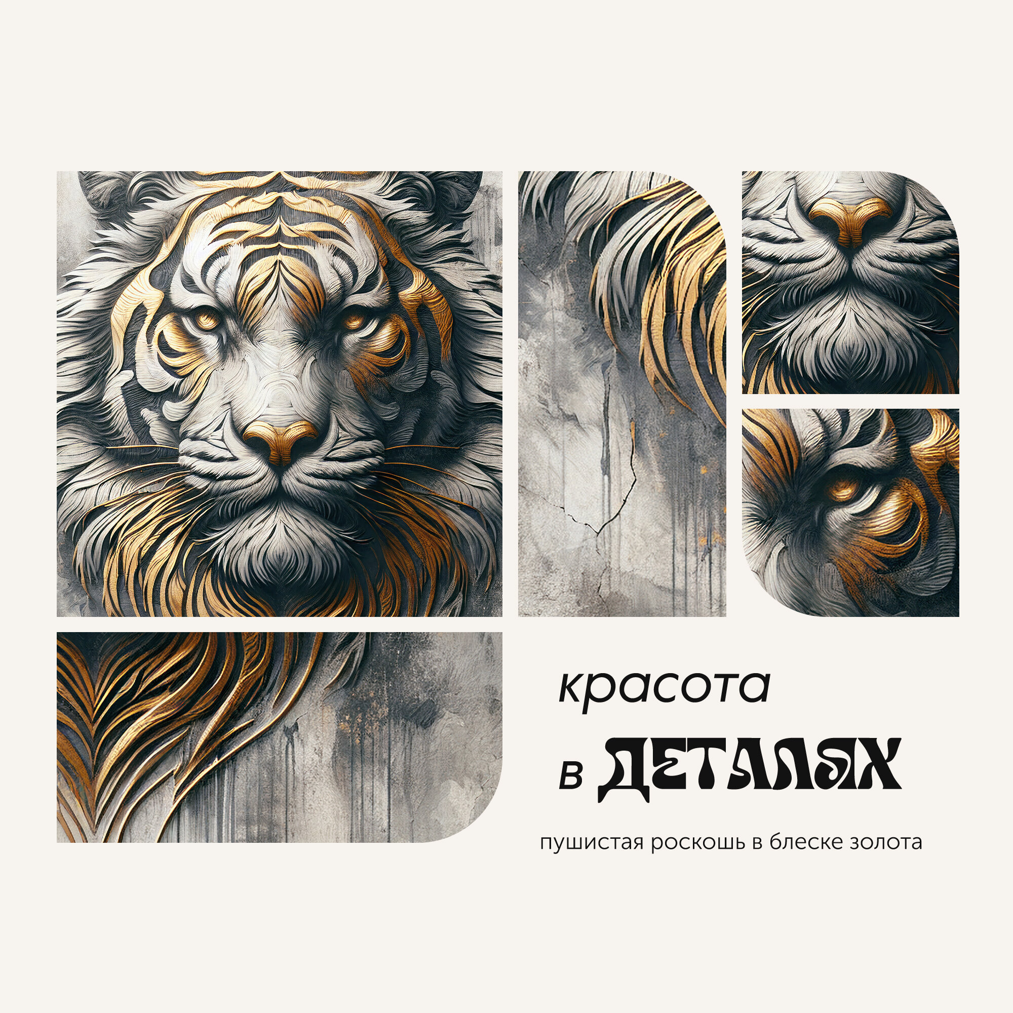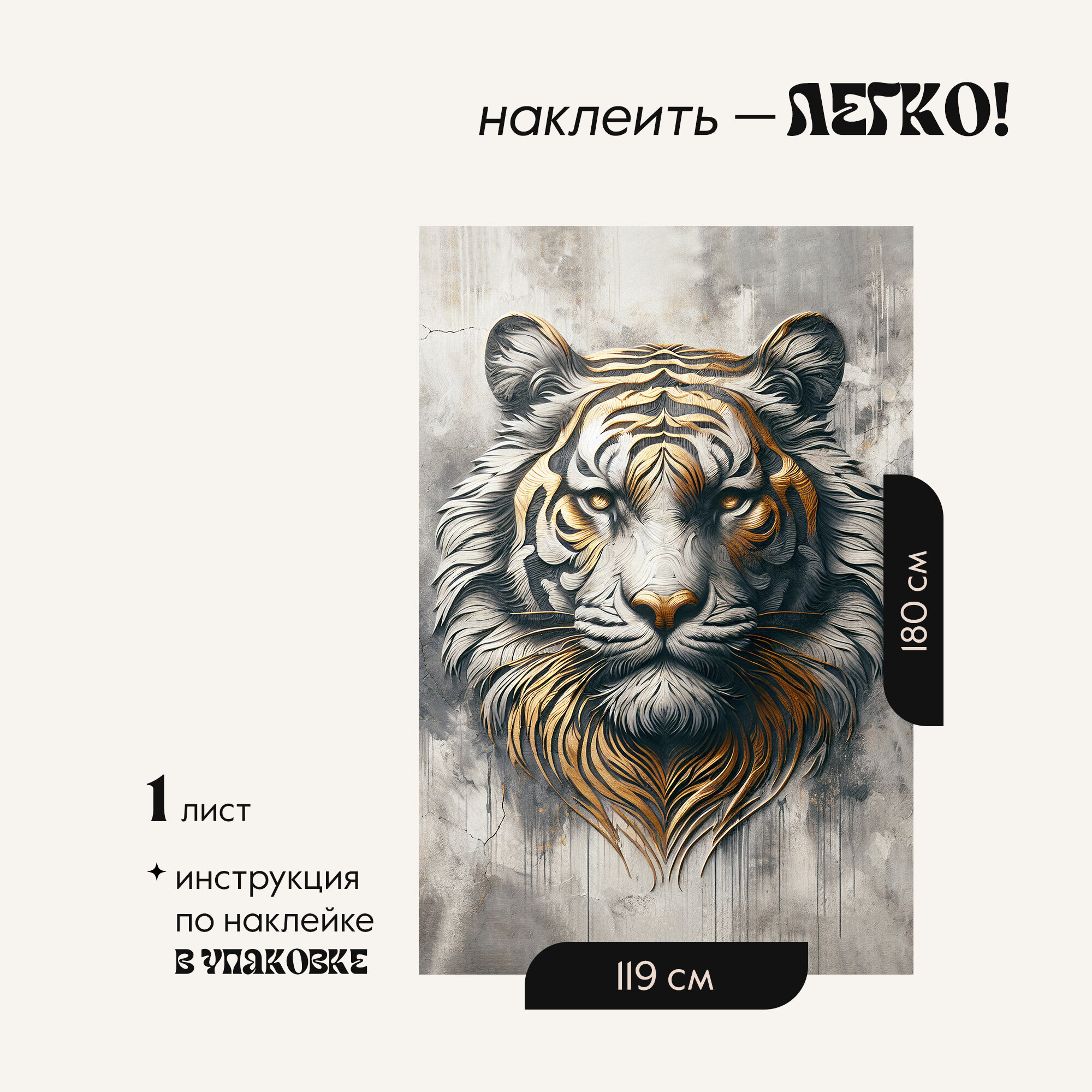 Фотообои Postermarket, "Тигр с золотом " бумажные, 119 х 180 см. интересное:
