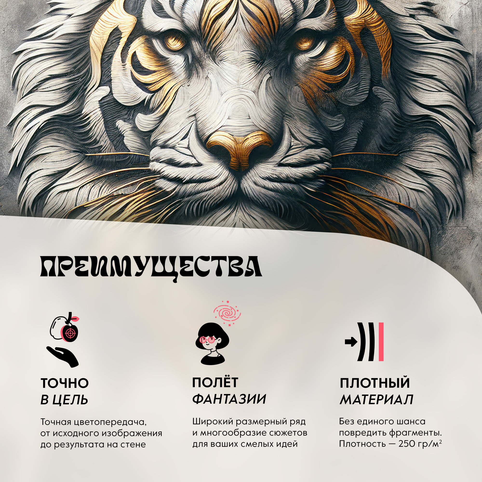 Ниже Вы можете прочитать отзывы на Фотообои Postermarket, "Тигр с золотом " бумажные, 119 х 180 см., ознакомится с подробными характеристиками, посмотреть интересные обзоры и фотографии на Фотообои Postermarket, "Тигр с золотом " бумажные, 119 х 180 см..