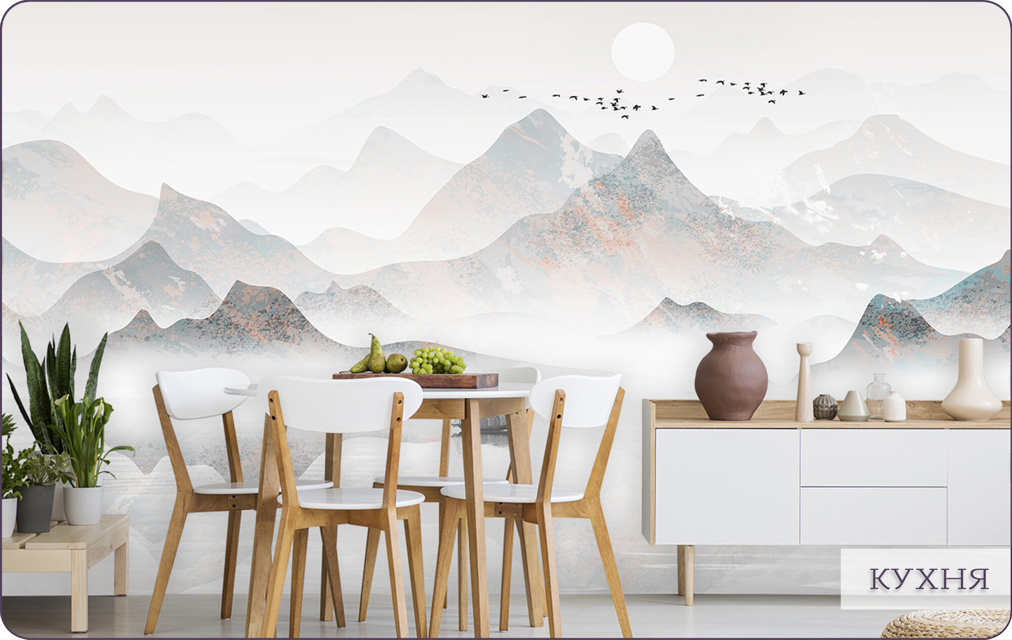 Фотообои на стену флизелиновые 3d Природа Горы Акварель 600х270 см Bartonwall N053