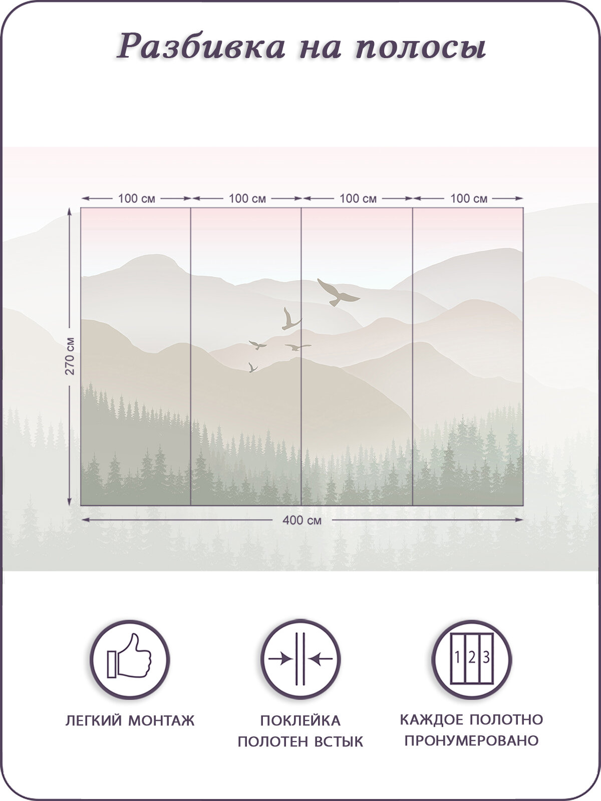 Купить Фотообои на стену флизелиновые 3d Природа Акварель Горы 400х270 см Bartonwall N097