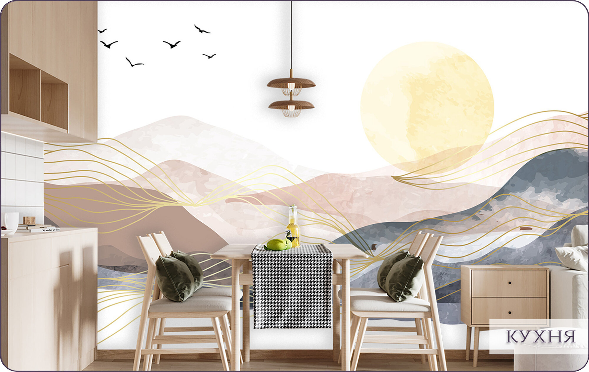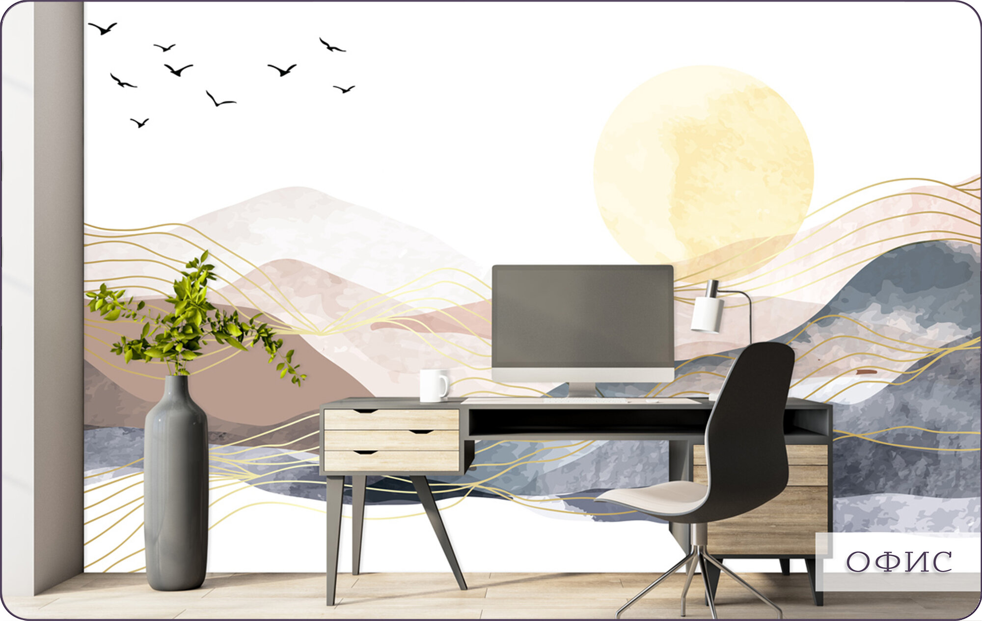 Купить Фотообои на стену флизелиновые 3d Природа Горы Акварель 600х270 см Bartonwall N035