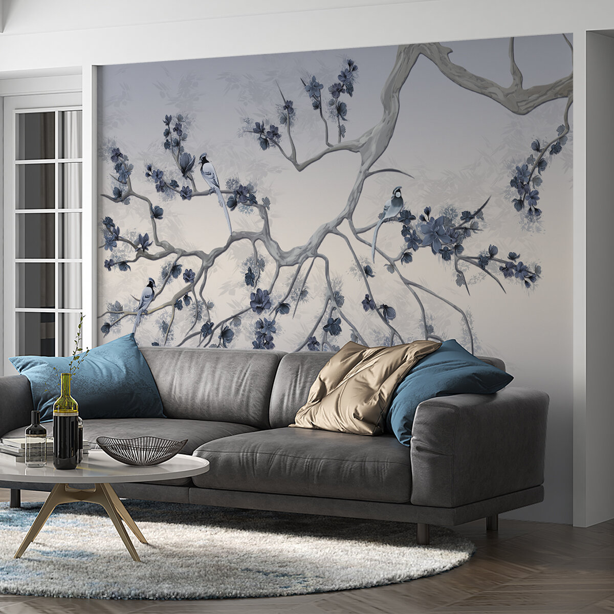 Фотообои на стену флизелиновые встык PHOTOSTENA Живописные птицы на ветке 3,56 x 2,7 м 9,61 м2 интересное: