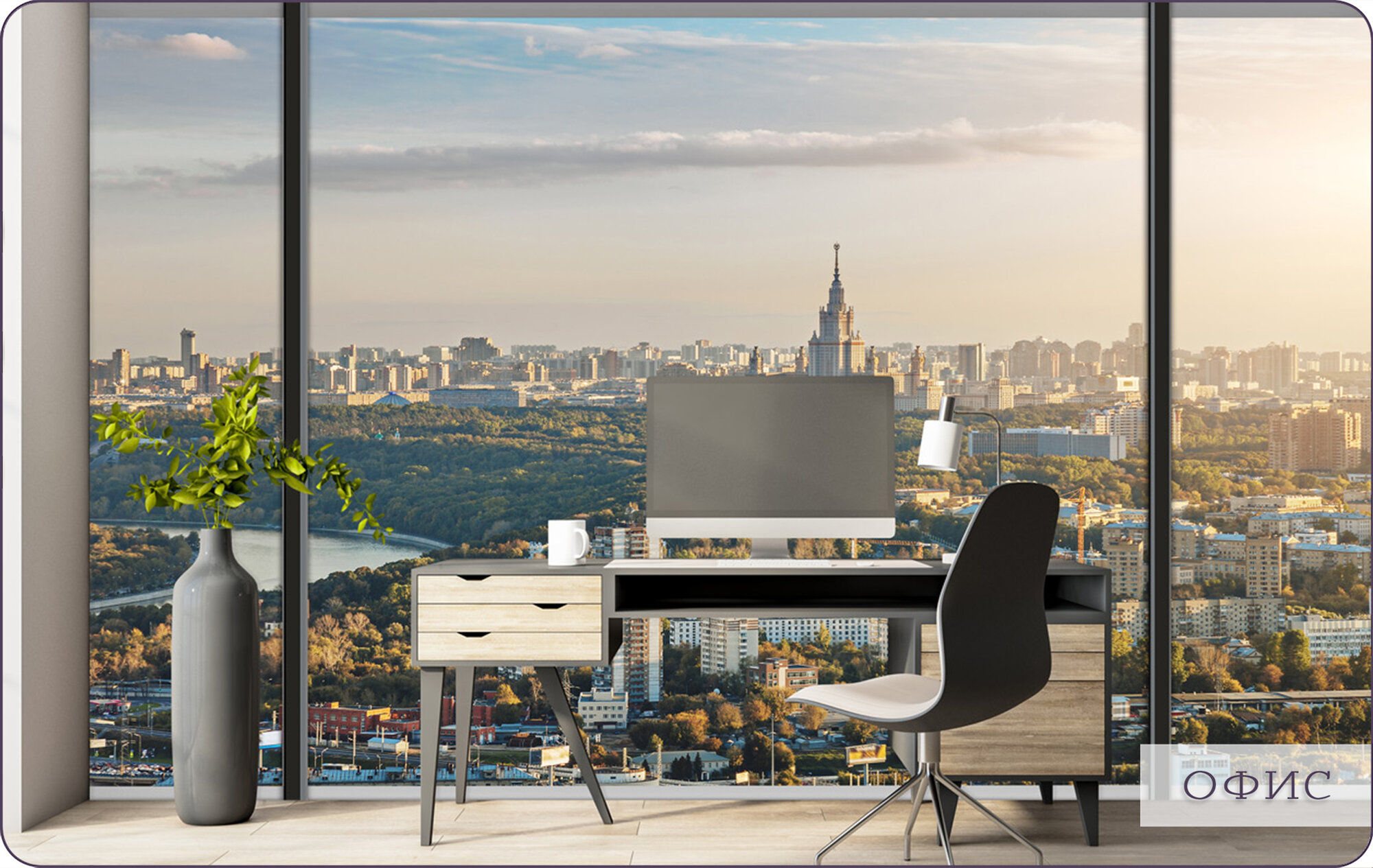 Купить Фотообои на стену флизелиновые 3d Окно Москва Город 300х270 см Bartonwall U259