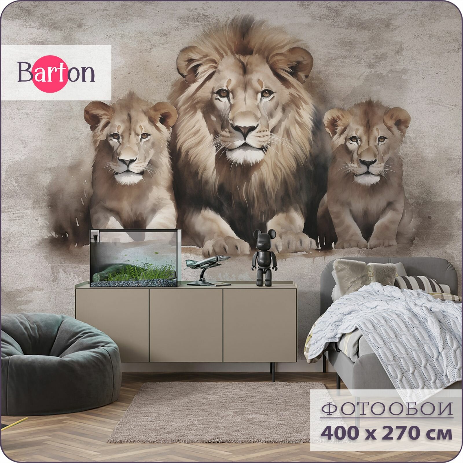 Фотообои на стену флизелиновые 3d Детские Для подростка Сафари Львы 400х270 см Bartonwall K260-C