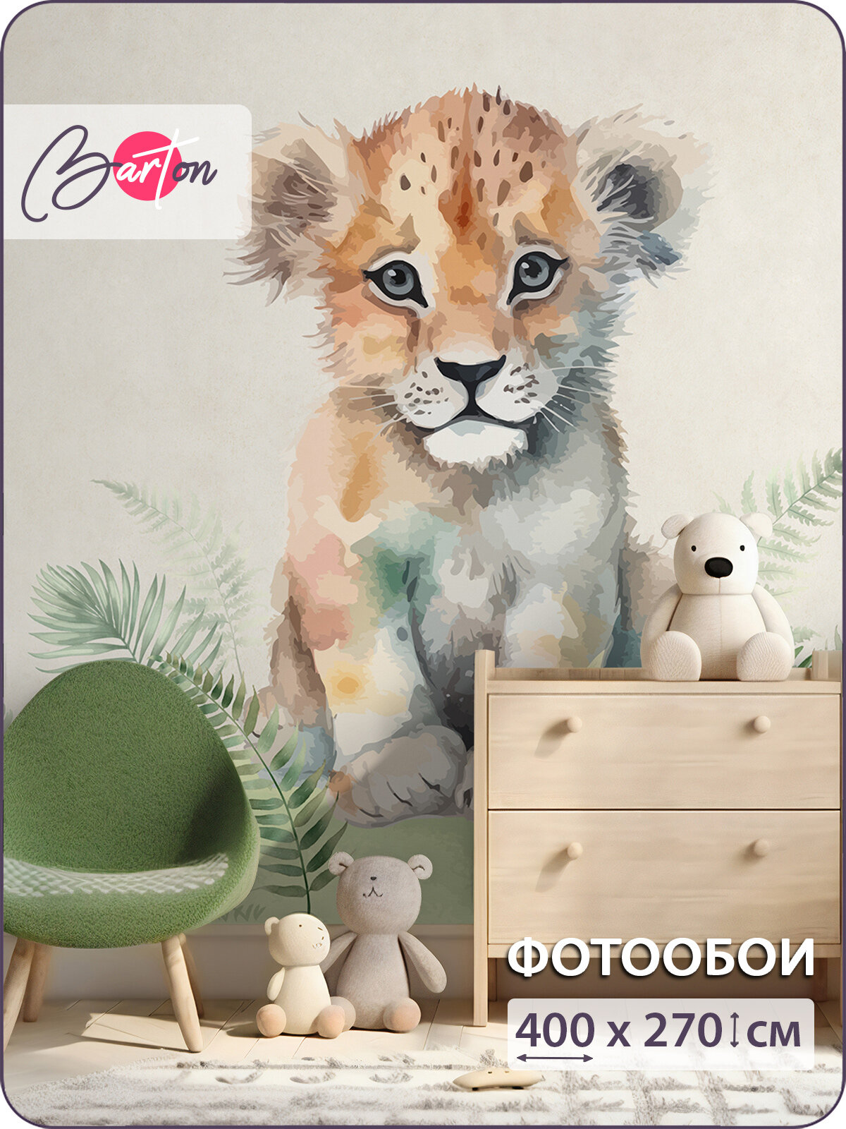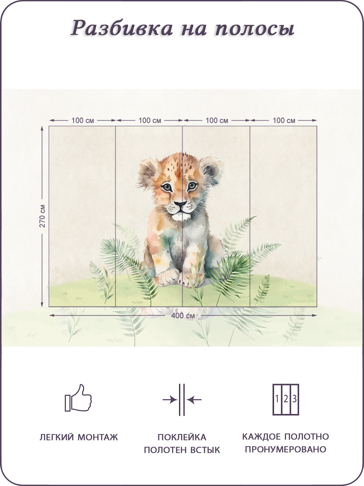 Купить Фотообои на стену флизелиновые 3d Детские Львенок 400х270 см Bartonwall K322_B