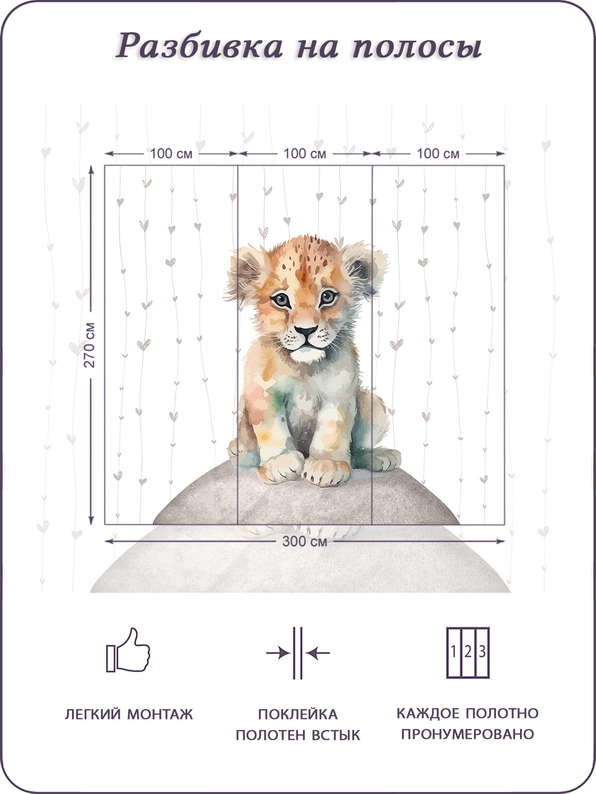 Купить Фотообои на стену флизелиновые 3d Детские Львенок 300х270 см Bartonwall K322