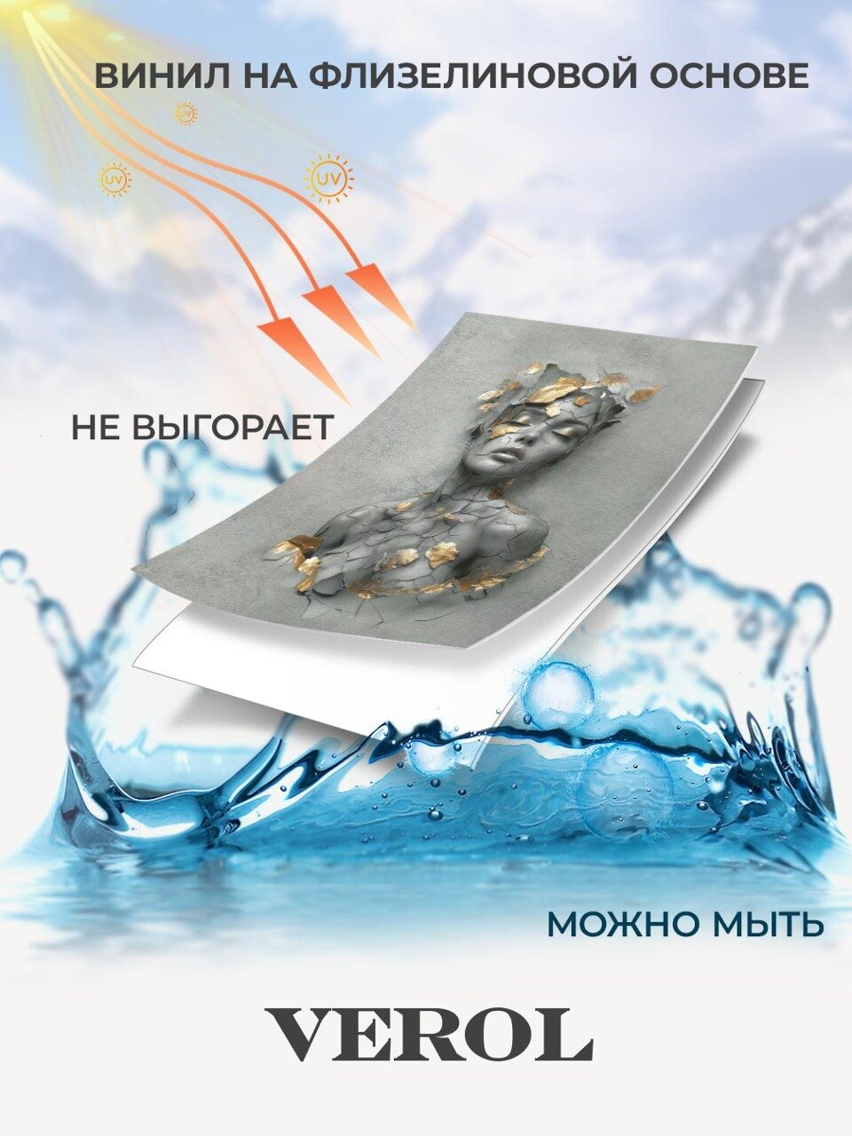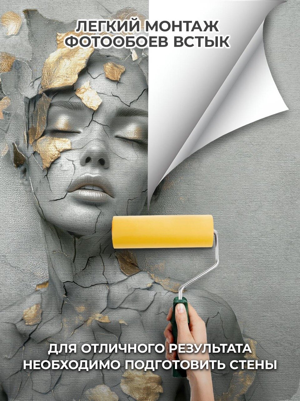 Фотообои 3D флизелиновые VEROL "Девушка, серый барельеф с золотом" 300*283 см, виниловое покрытие интересное: