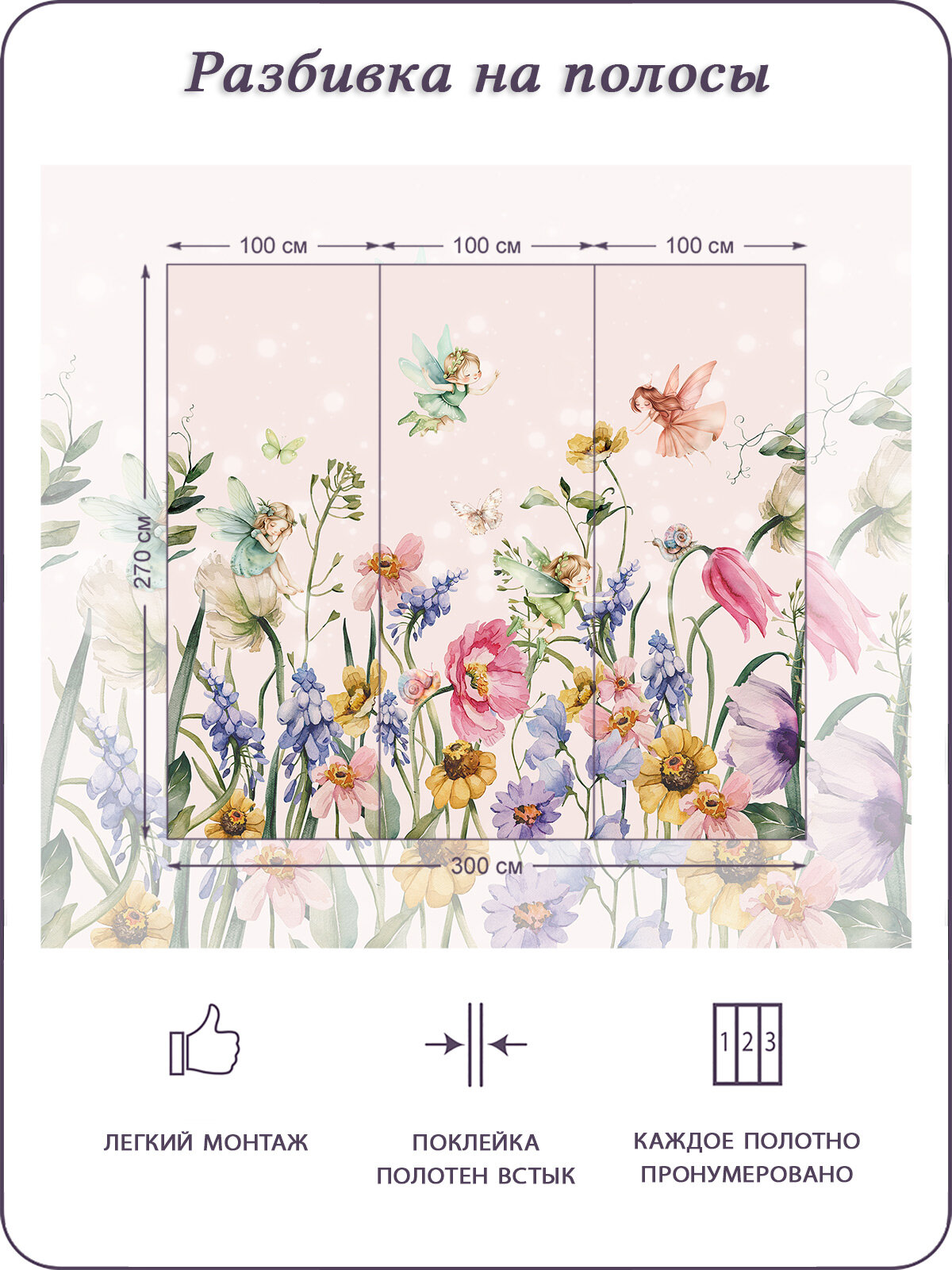 Купить Фотообои на стену флизелиновые 3d Детские Для девочки Цветы Феи 300х270 см Bartonwall K310-P