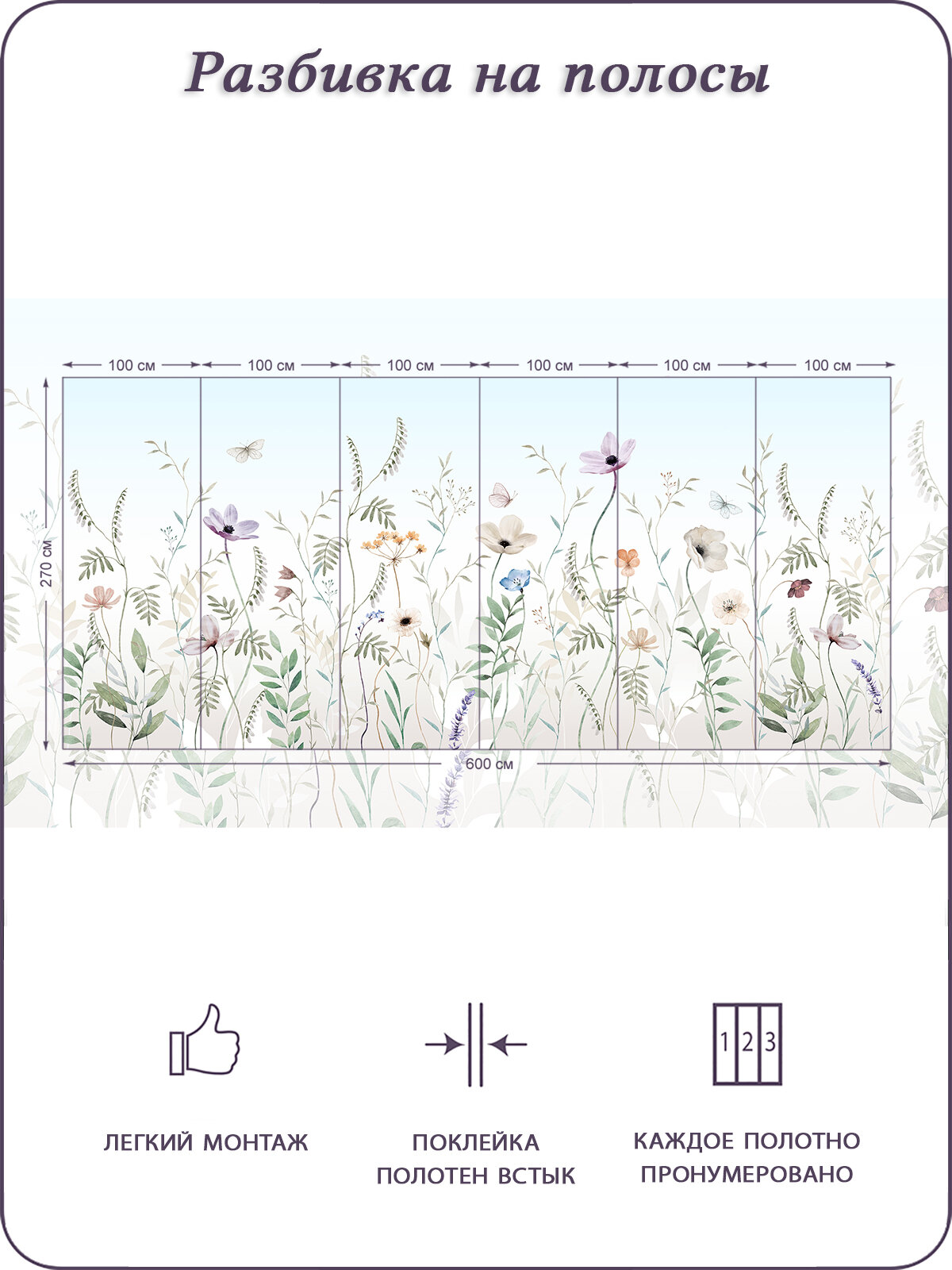 Купить Фотообои на стену флизелиновые 3d Детские Цветы Бабочки 600х270 см Bartonwall K320