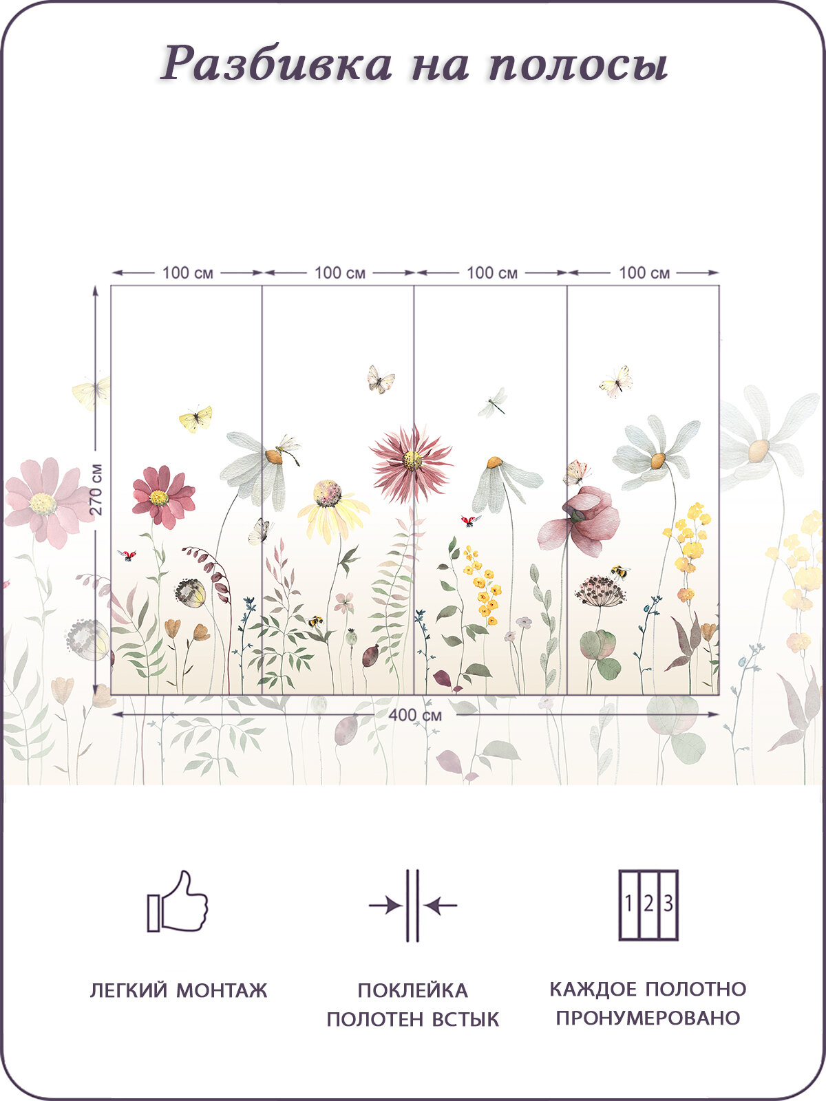 Купить Фотообои на стену флизелиновые 3d Детские Цветы Бабочки 400х270 см Bartonwall K294